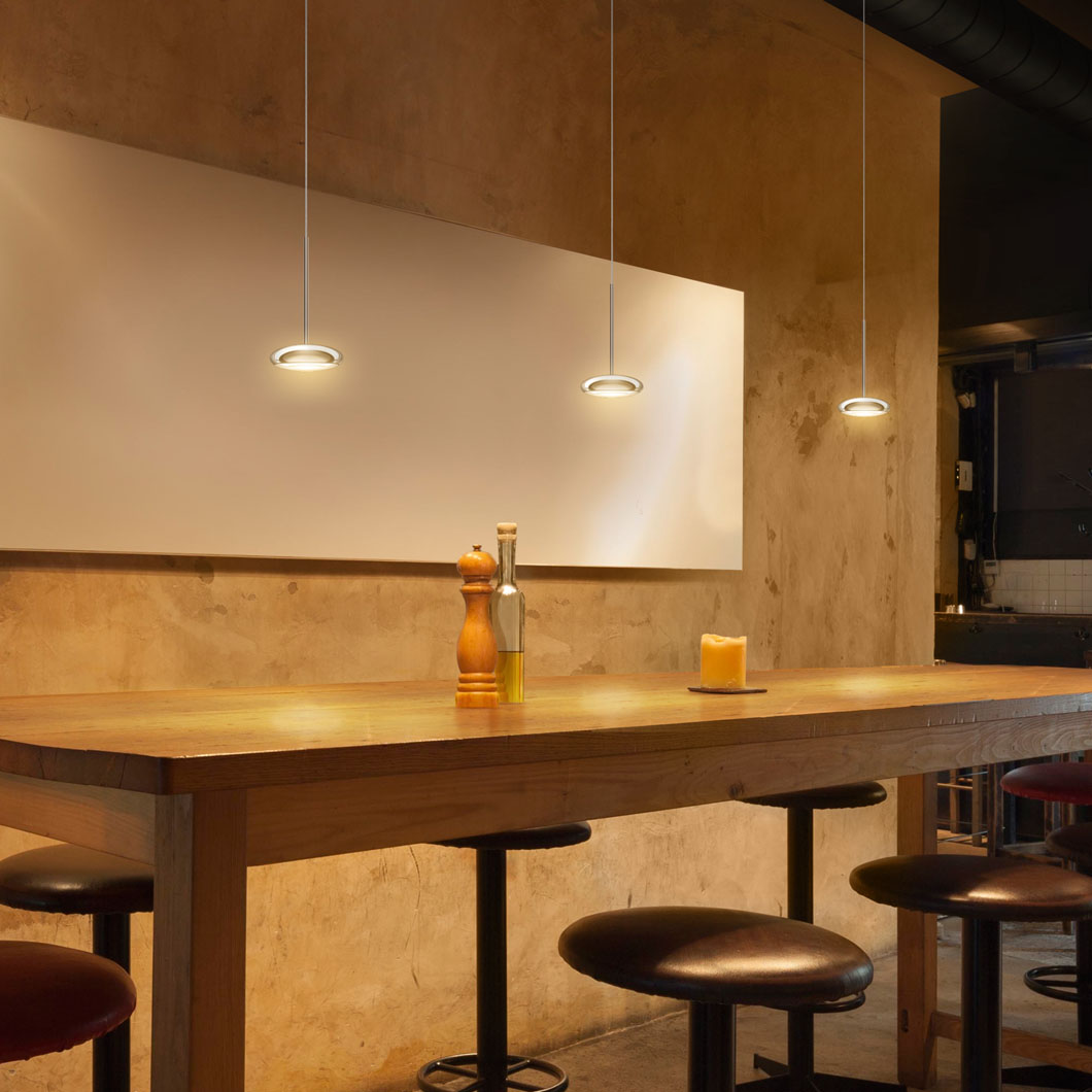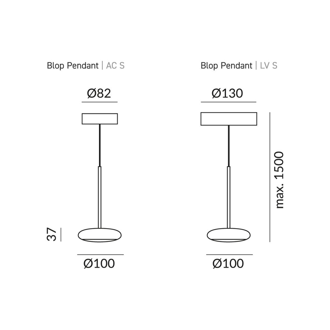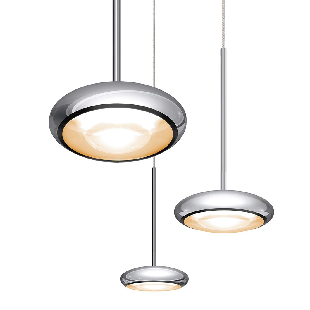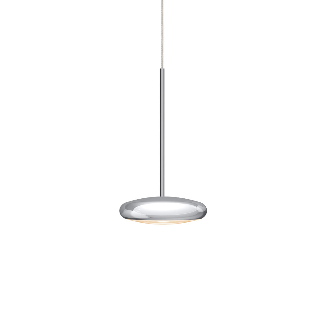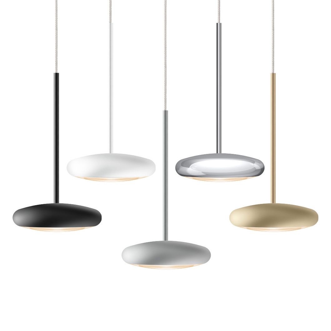 The contemporary round Blop pendant light features a discreet 10cm size and minimalist design. Blop has a choice of 30°, 60° or 100° beam angles, and is finished in black, white, matt chrome, chrome or champagne. A 230V mains dimmable suspension light, Blop is available in 2 LED versions: 12W (AC S) which produces 950 lumen or 15W (LV S) with a brighter 1200 lumen output. Blop can be installed individually, in rows over a table or kitchen island, or in a cluster with a canopy. This versatility makes the Blob pendant perfect for both residential or commercial projects that require a minimalist light fitting.