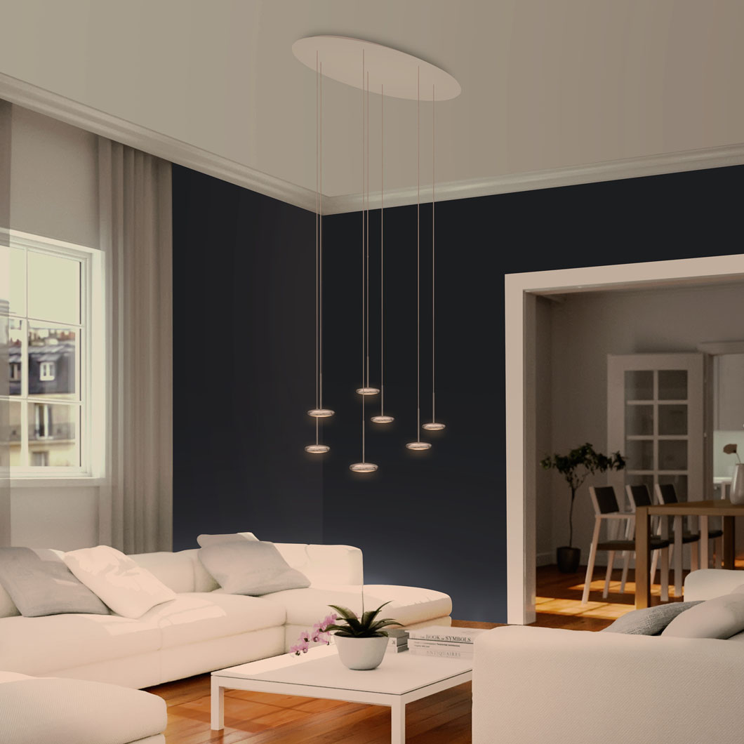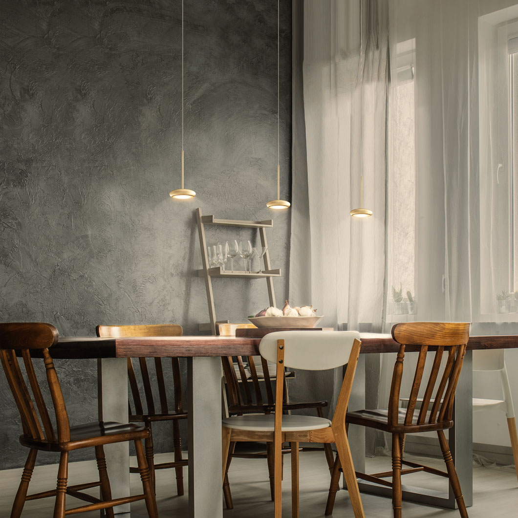 This allows pendants, spot lights and ceiling lights to be easily combined for a harmonious scheme.