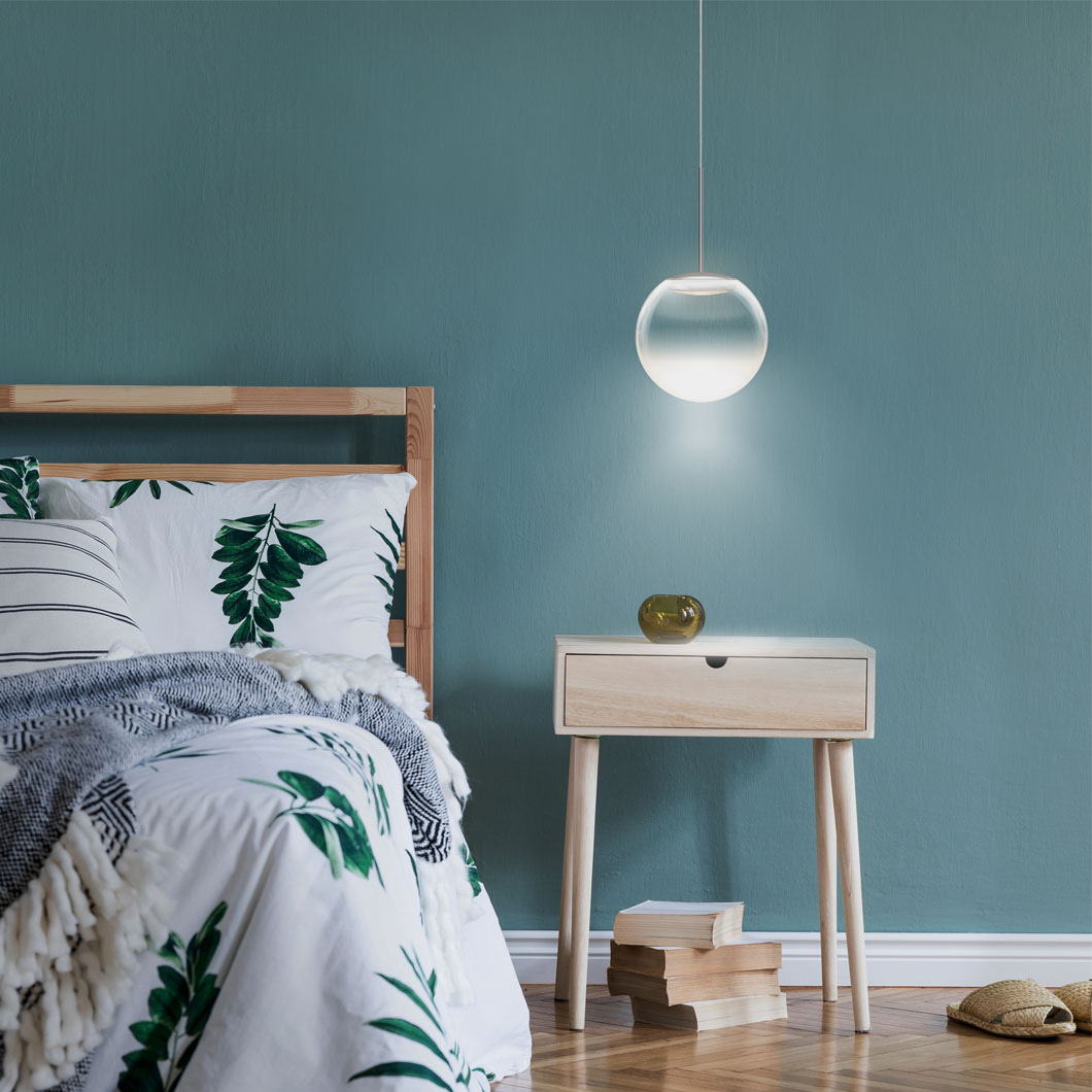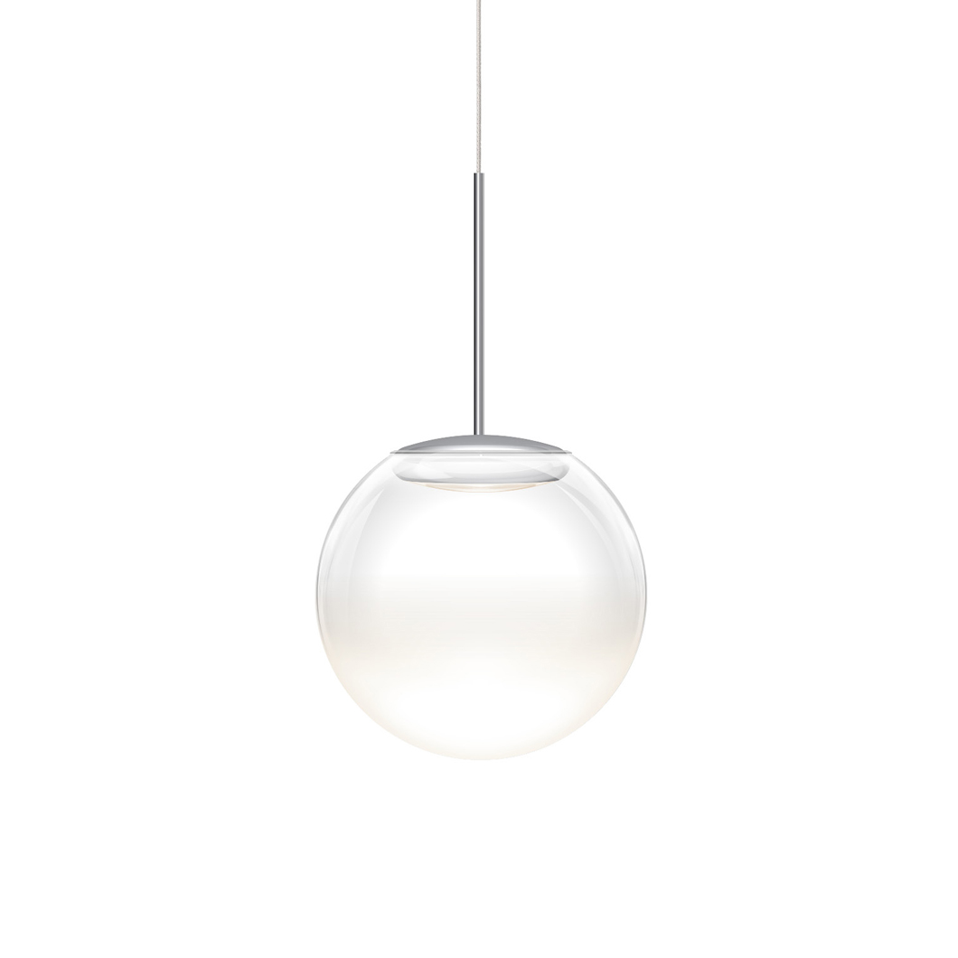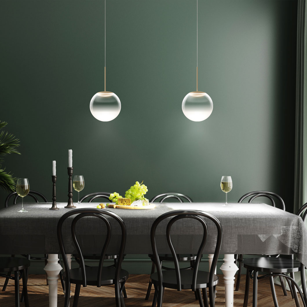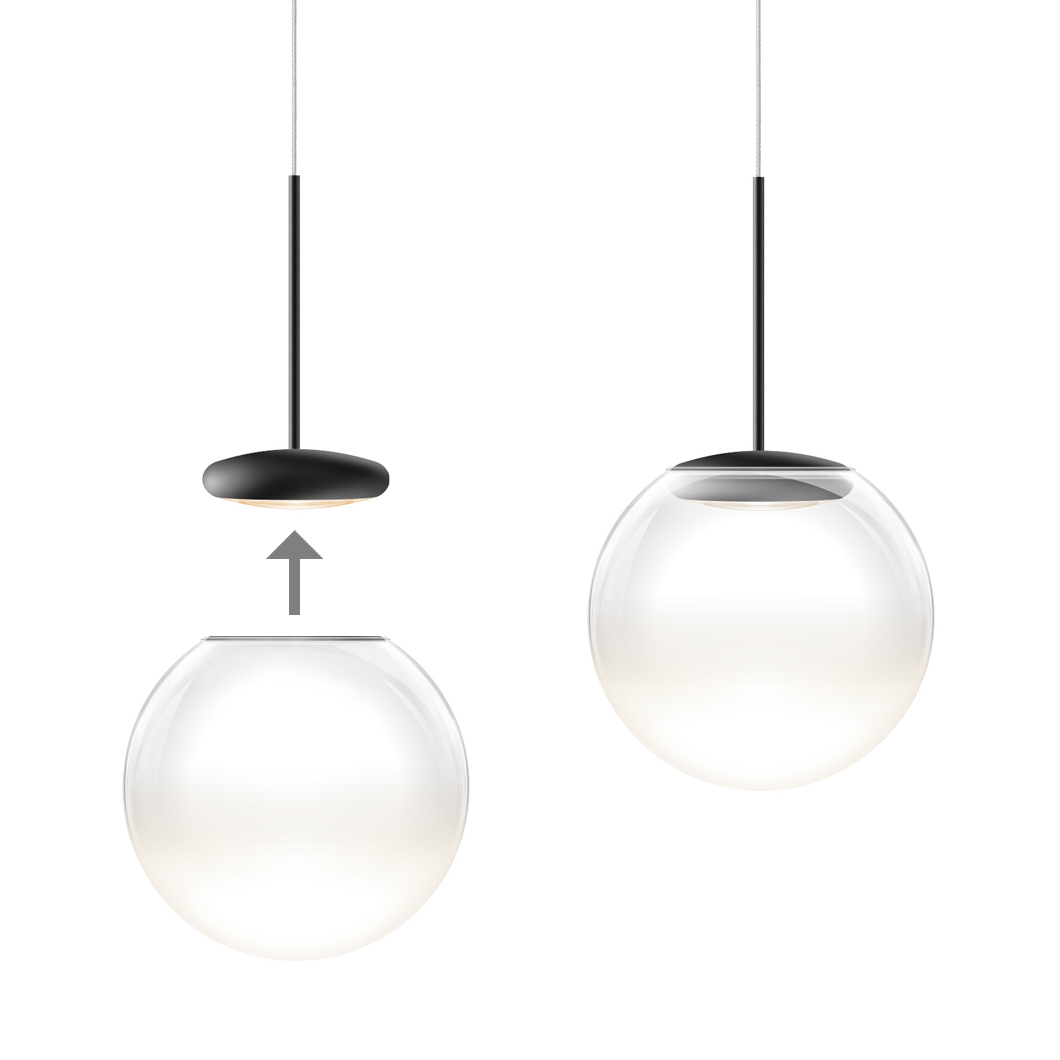 With the addition of a chic glass diffuser, the Blop Moll transforms the Blob pendant into an elegant suspension light. The transparent glass diffuser is enhanced by the choice of five finishes: black, white, matt chrome, chrome or champagne/white. A 230V mains dimmable suspension light, Blop Moll is available in 2 LED versions: 12W (AC S) which produces 950 lumen or 15W (LV S) with a brighter 1200 lumen output. Blop Moll can be installed individually, in rows over a table or kitchen island, or in a cluster with a canopy. This versatility makes the Blob Moll pendant perfect for both residential or commercial projects that require a minimalist light fitting.