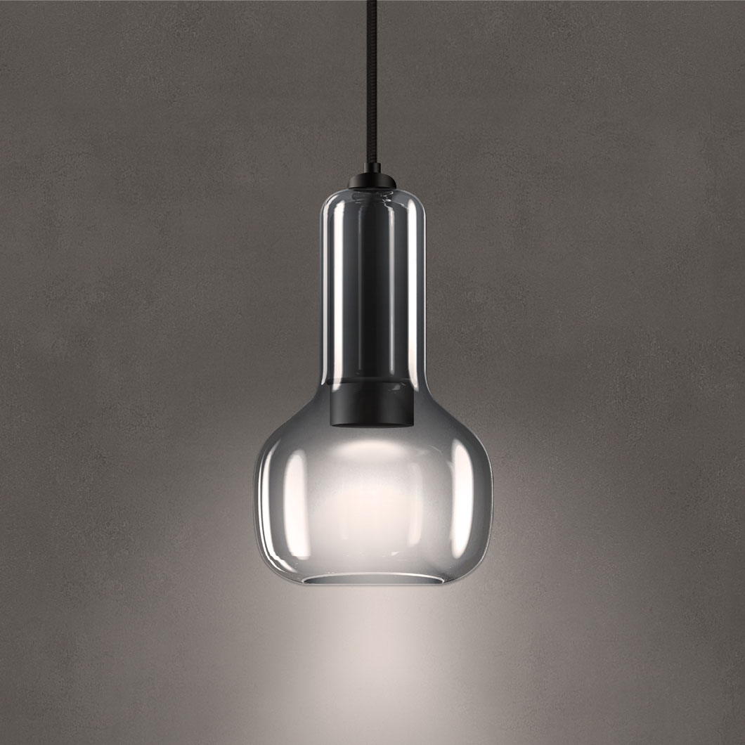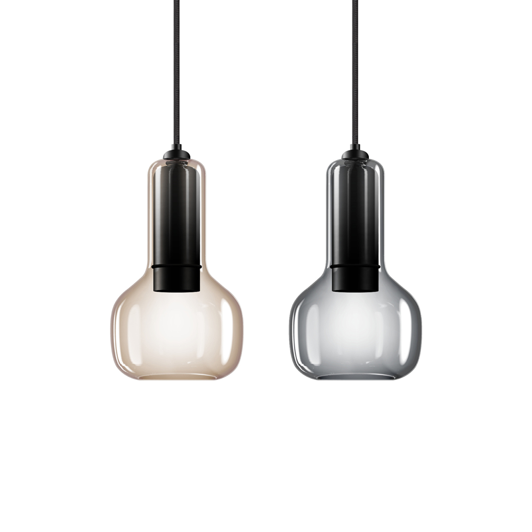 Contemporary yet unique, the Bruck Booh pendant light uses traditional craftsmanship to create the mouth-blown glass diffuser. An elegant suspension lamp, the delicate glass shade is enhanced by the sleek cylindrical black light unit. Need an inviting and cosy suspension lamp? Pick the amber glass finish to create a warm atmosphere. Looking for something more modern? Choose the cool grey glass diffuser.