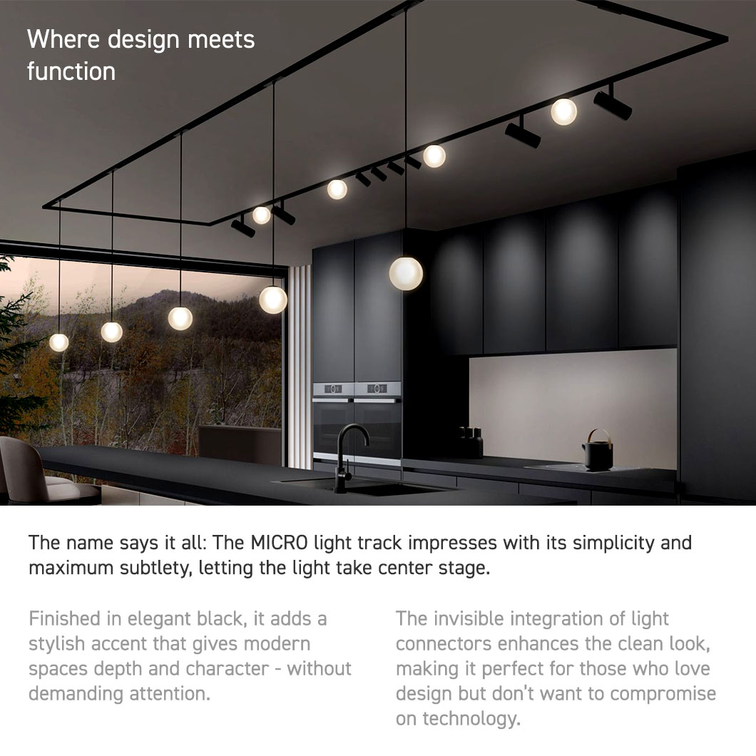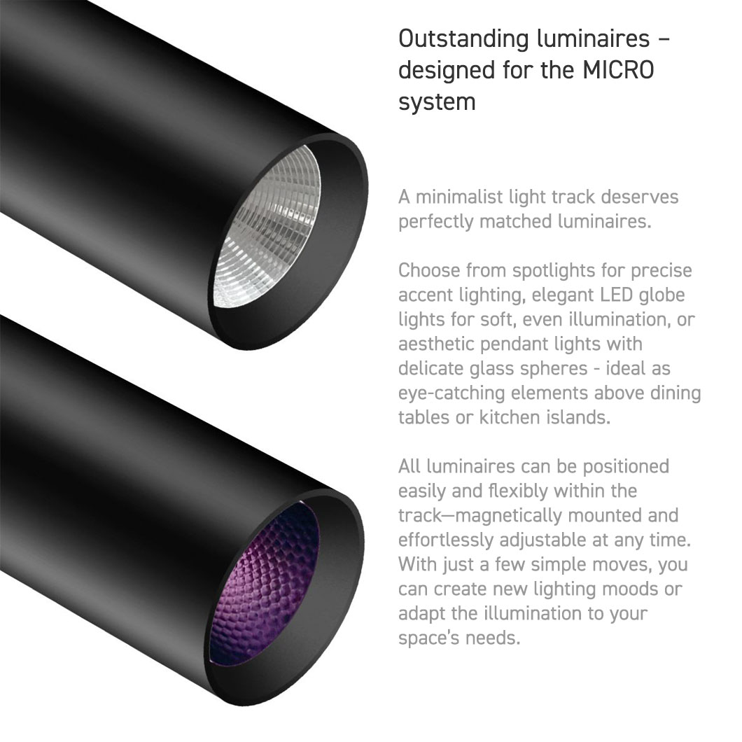 The MICRO track system is DALI compatible, allowing for professional digital lighting control and enabling even complex lighting scenarios. With precise dimming technology, you can create the perfect lighting mood to suit any occasion.