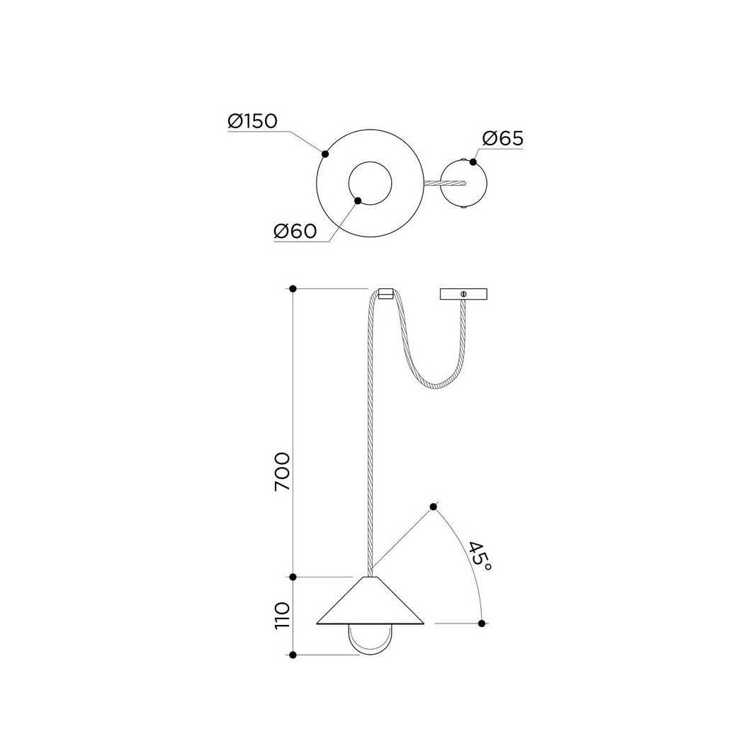 Available in a standard and XL version, sitting at Ø150mm and Ø220mm respectively, the Alba Top can be used as suspended bedside lamps, or highlighting an island counter in a kitchen. The total drop is around 700mm, however custom lengths can be catered for.