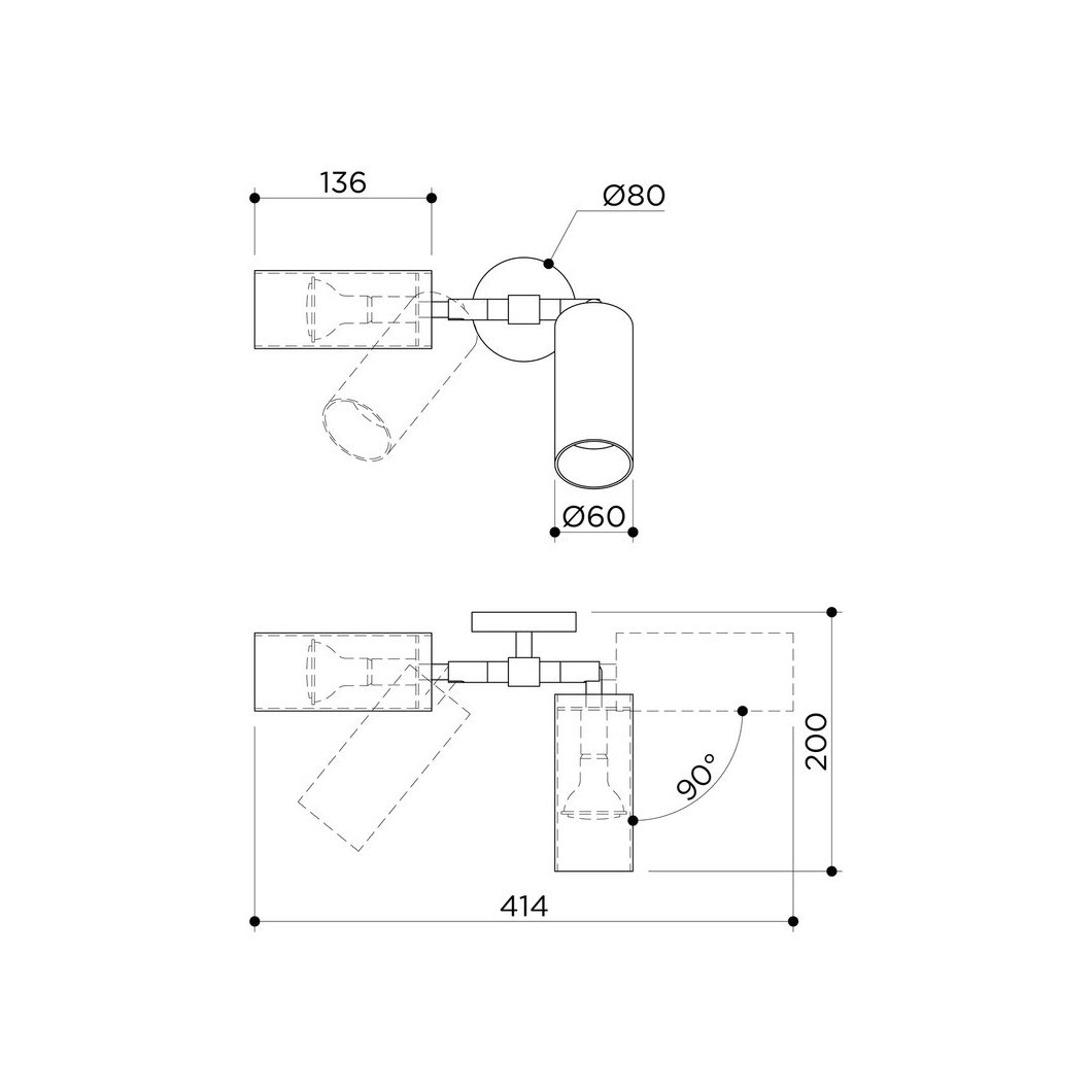 Supplied with GU10 bulbs on both ends, the cylindrical heads are independently adjustable to 90 degree angles, for increased flexibility and varied applications on both walls and ceilings. The alterable nature of this lighting fixture makes it suitable for focused or accent lighting, perfect for showcasing wall art or highlighting displays in a commercial setting.