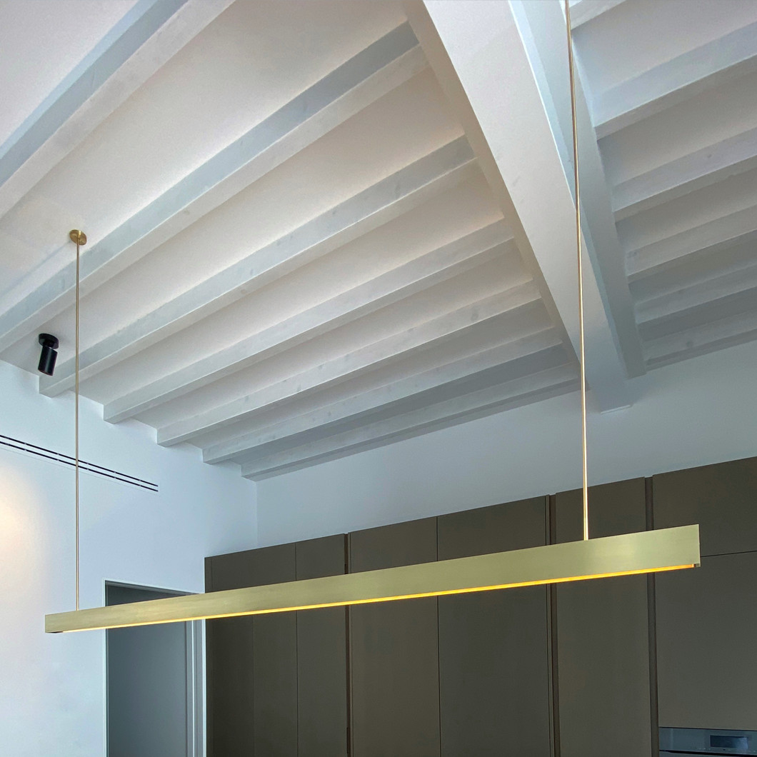 Contain have collaborated with award-winning, Mallorcan architecture firm OHLAB to create the stunning H Linear Pendant. With its minimalistic structure, the H Linear Pendant delivers a strikingly modern look designed to complement simple, contemporary spaces. Whether highlighting a chic kitchen island or being the focal point in a warm, welcoming lounge, the range of brass finishes will flawlessly incorporate this lamp into your interior.