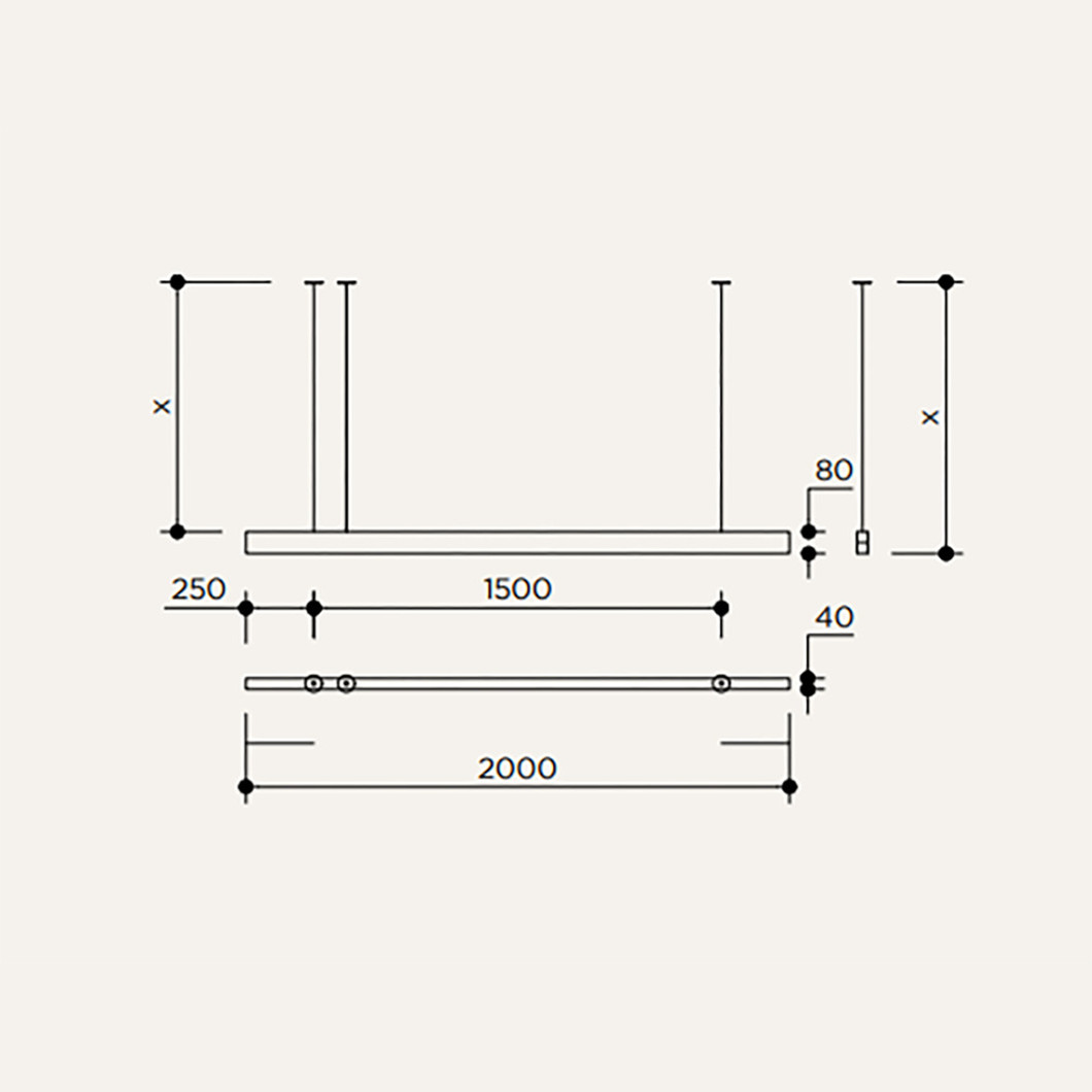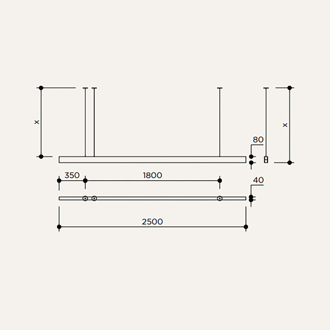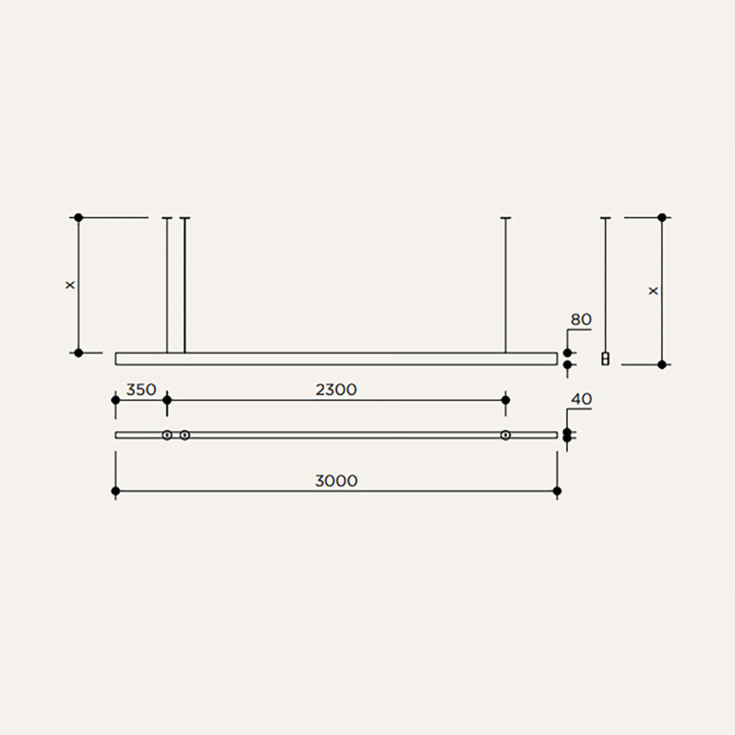 Available in 2000mm, 2500mm, or 3000mm widths, this sleek suspension light may be more suited to larger, open areas. With a customisable drop height, the H Linear Pendant is certain to fit a wide variety of spaces.