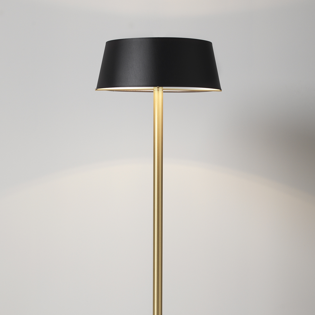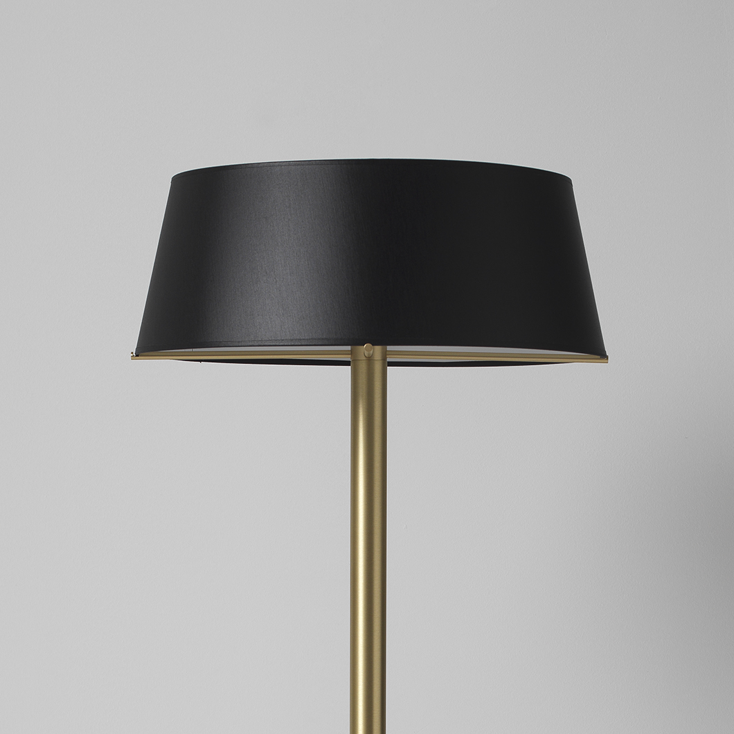 This floor lamp is available in two versions; either variant is excellently designed to suit different needs. For situations where a discrete floor lamp is needed, XS is more subtle in its minimalist design, complete with a traditional cone-shaped shade. Alternatively, XL is perfect as a focal point of whichever room it’s in, due to the larger dimensions and contemporary design of its cylindrical-shaped shade. Customise the finish of this floor lamp with four contemporary finishes to choose from: brass, graphite, nickel and copper. The primary finish refers to the main body of the luminaire, while the secondary finish refers to the accompanying decorative disc. The Cale(e) collection is also available as a wall lamp, table lamp and pendant. See below in related products for more information. LED included.