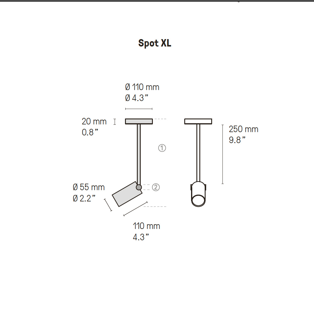 Spot XL is the perfect solution for drawing attention to the notable aspects of an interior, with a focused and precise powerful beam of light. This luminaire is a part of a family of minimalist lights; Cale(e) are cohesive in their sophisticated forms consisting of a metallic main frame and accompanying circular centrepiece in a modern graphite finish. The spotlight version boasts a more direct and focused beam of light, while its siblings produce a softer glow of illumination. This is excellent for situations where specific objects or areas of a room are needed to be highlighted, such as for art galleries, retail stores and museums. In addition, this can be used along a corridor or inside a cabinet in your home to accentuate elegant artwork, architecture or ornaments of importance.
