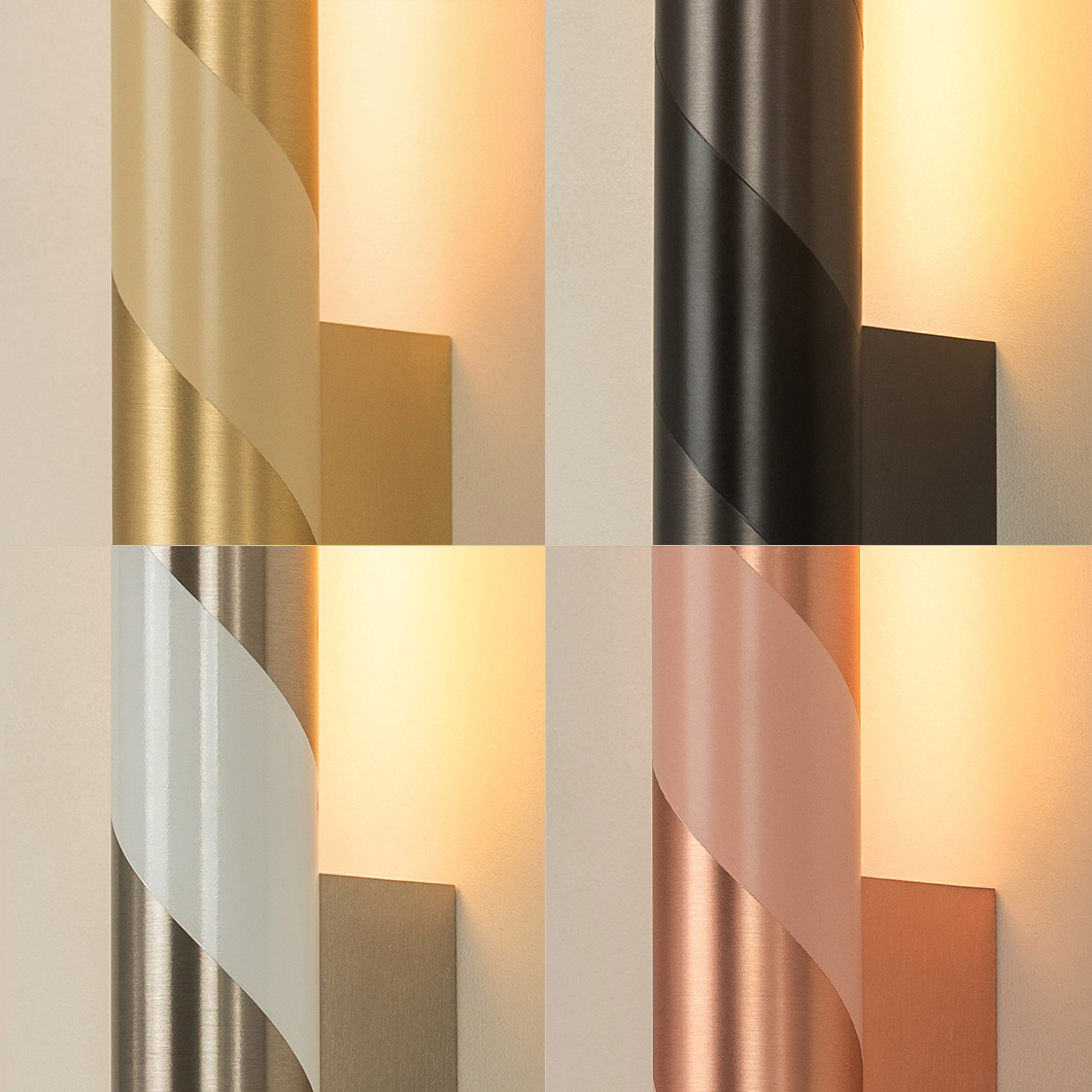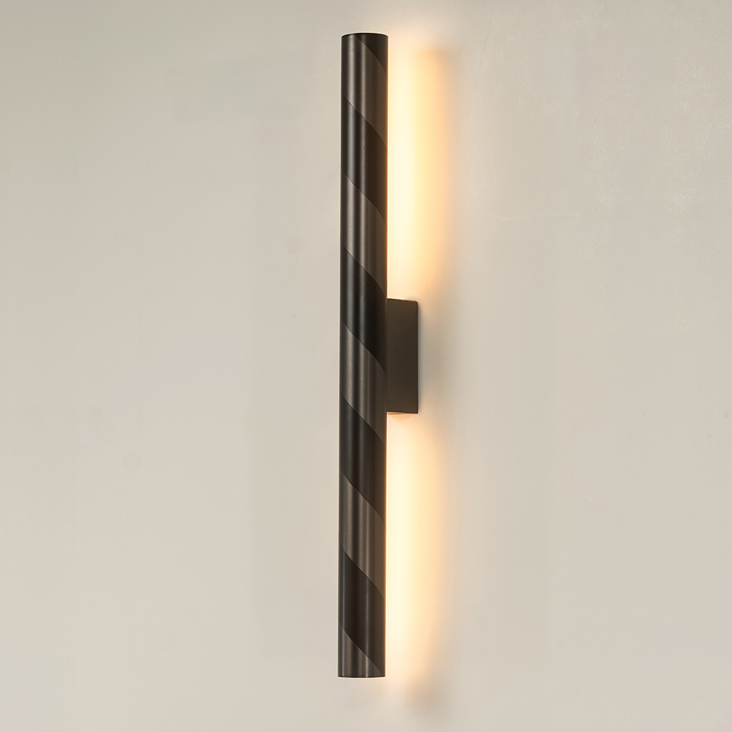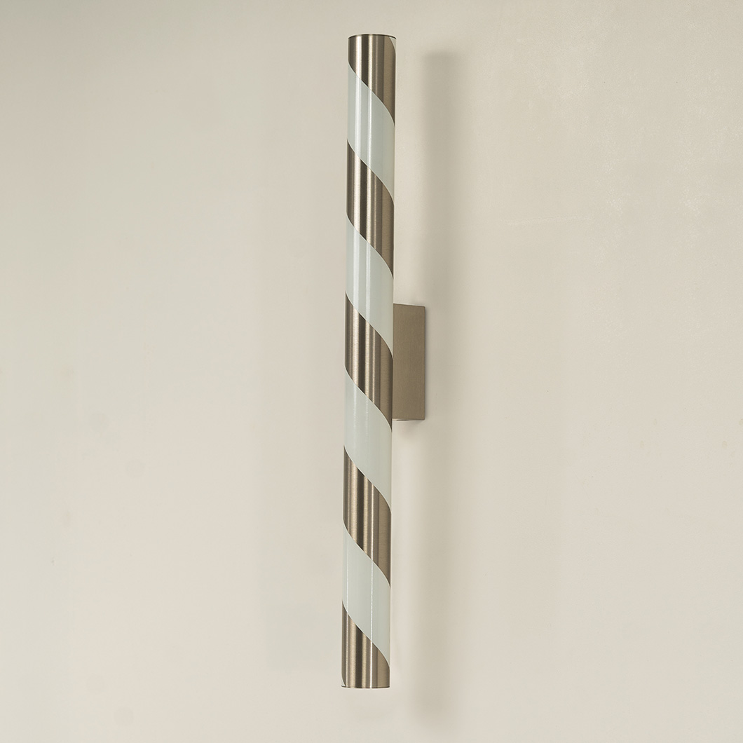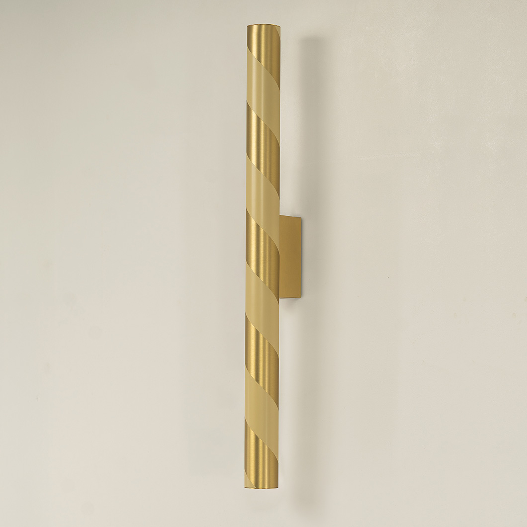 Designed to showcase the core expertise of CVL, Candy offers expert craftsmanship, shaping brass into a tubular form. The minimalist structure showcases the purity of the metal and the precision of the signature finishes, offering indirect backlighting on the wall where it is installed. The simplicity of Candy's form is subtly enhanced by its lacquered spiral pattern, wrapping around the cylindrical wall fixture like a candy cane.