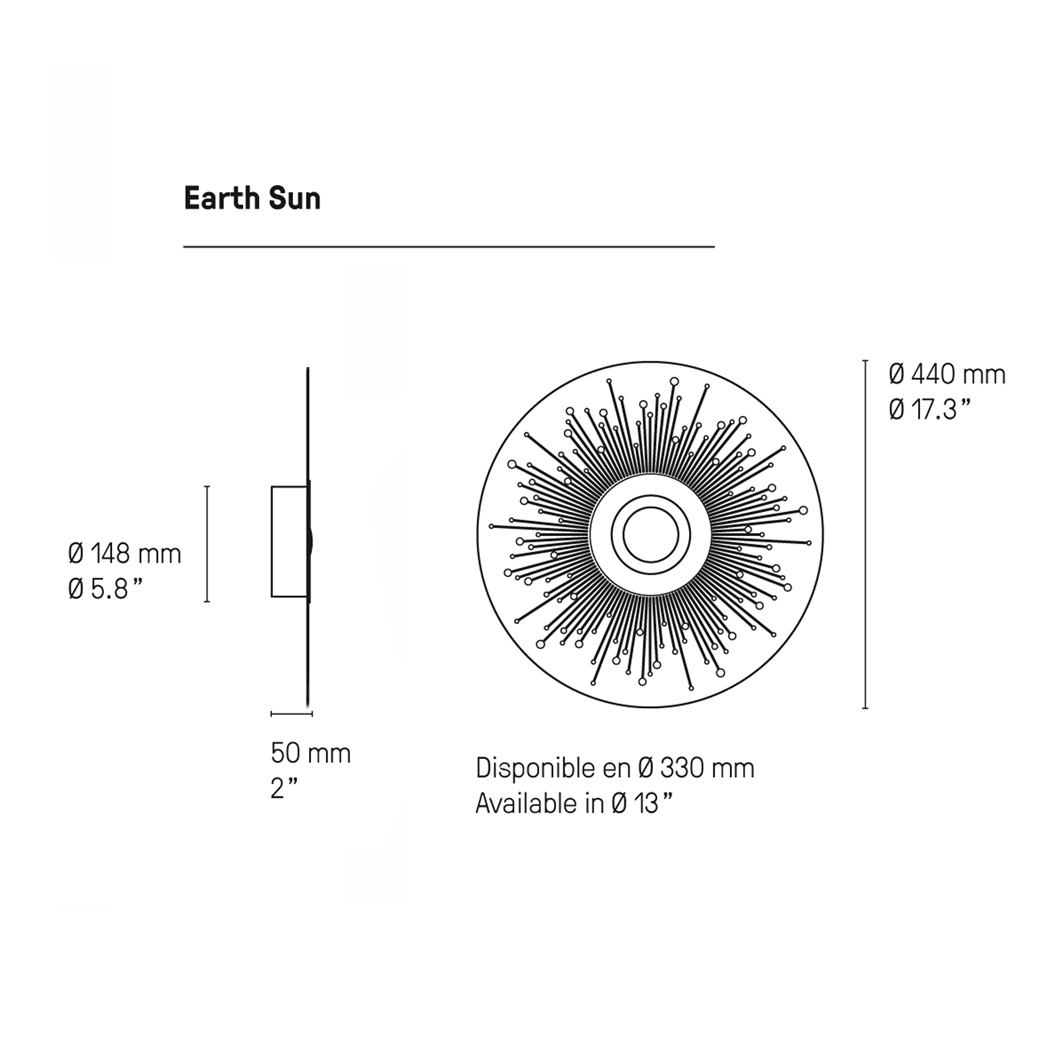 Sun is available in two sizes, each best suited to different situations. For those looking for a smaller, more discrete decorative wall light, choose the small version. However, for situations where a larger lighting is required, the large variant will draw attention with its grand dimensions. Choose between four stylish satin finishes, including: brass, graphite, copper and nickel. The variety of coatings allows the wall lights to be mixed-and-matched to create a spectacular scene of lighting, as well as offering choice in picking the right colour for the theme of your interior. Earth is a family of contemporary wall lights which exude minimalism in their artistic designs and patterns, whist maintaining cohesiveness in their disc-shaped forms. The Earth family are available as other wall lights, see below in More Like This for more information. LED included.