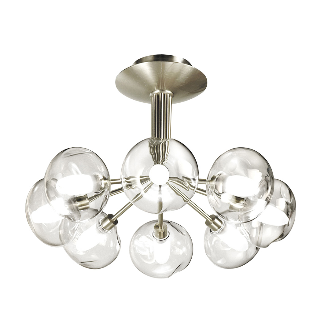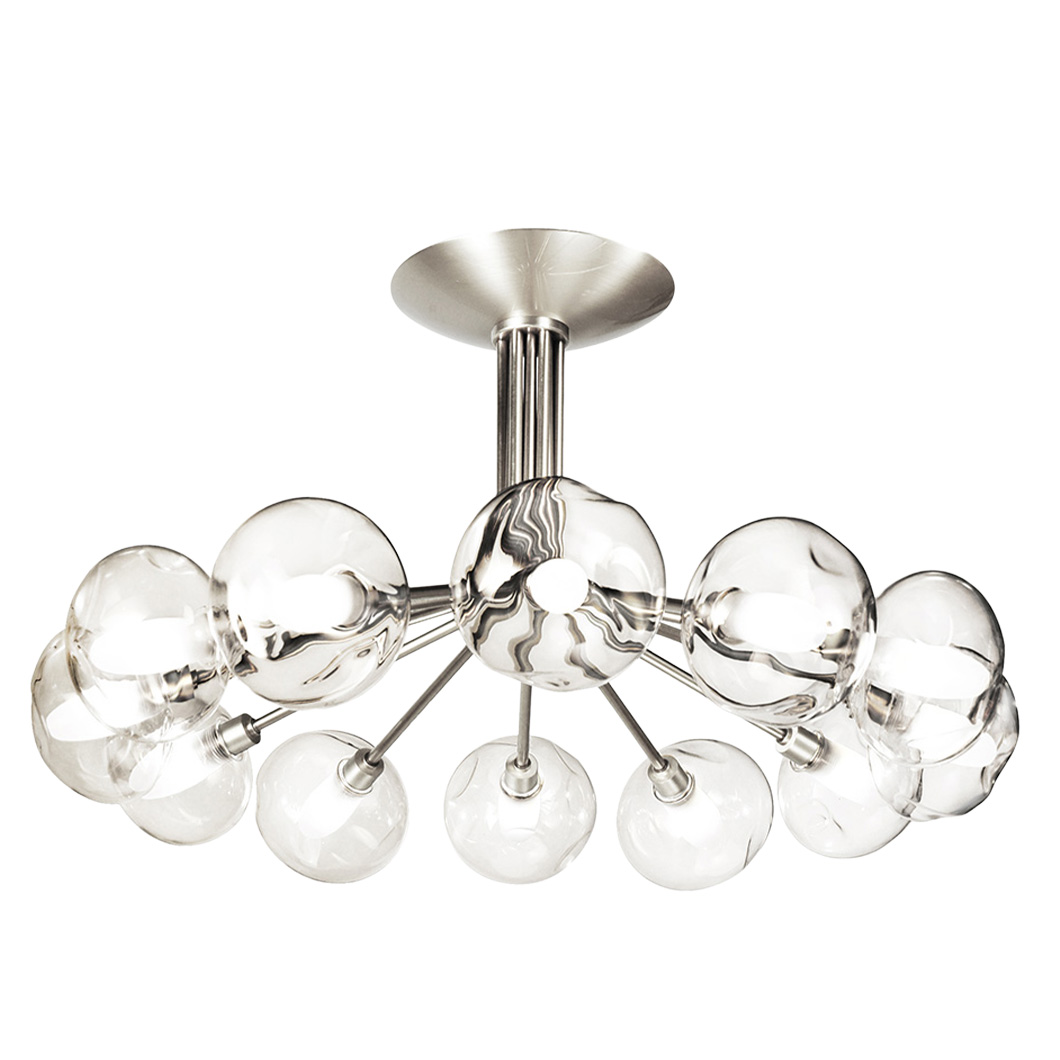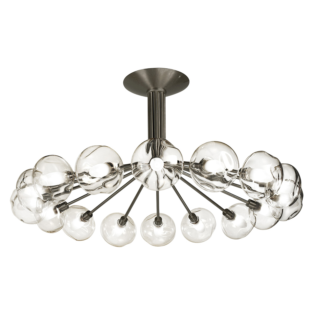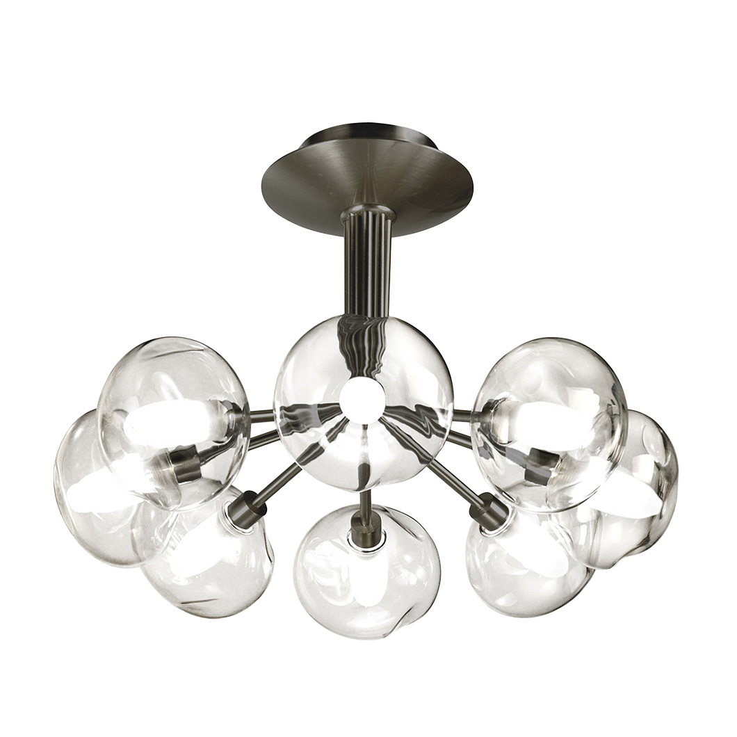 Choose between three stylish finishes for the metal structure: bruni, satin graphite, or satin nickel. Perla is also available with three glassware variants, offering both clear and opal white options: S100, Météore, or OP10. Light sources not included.