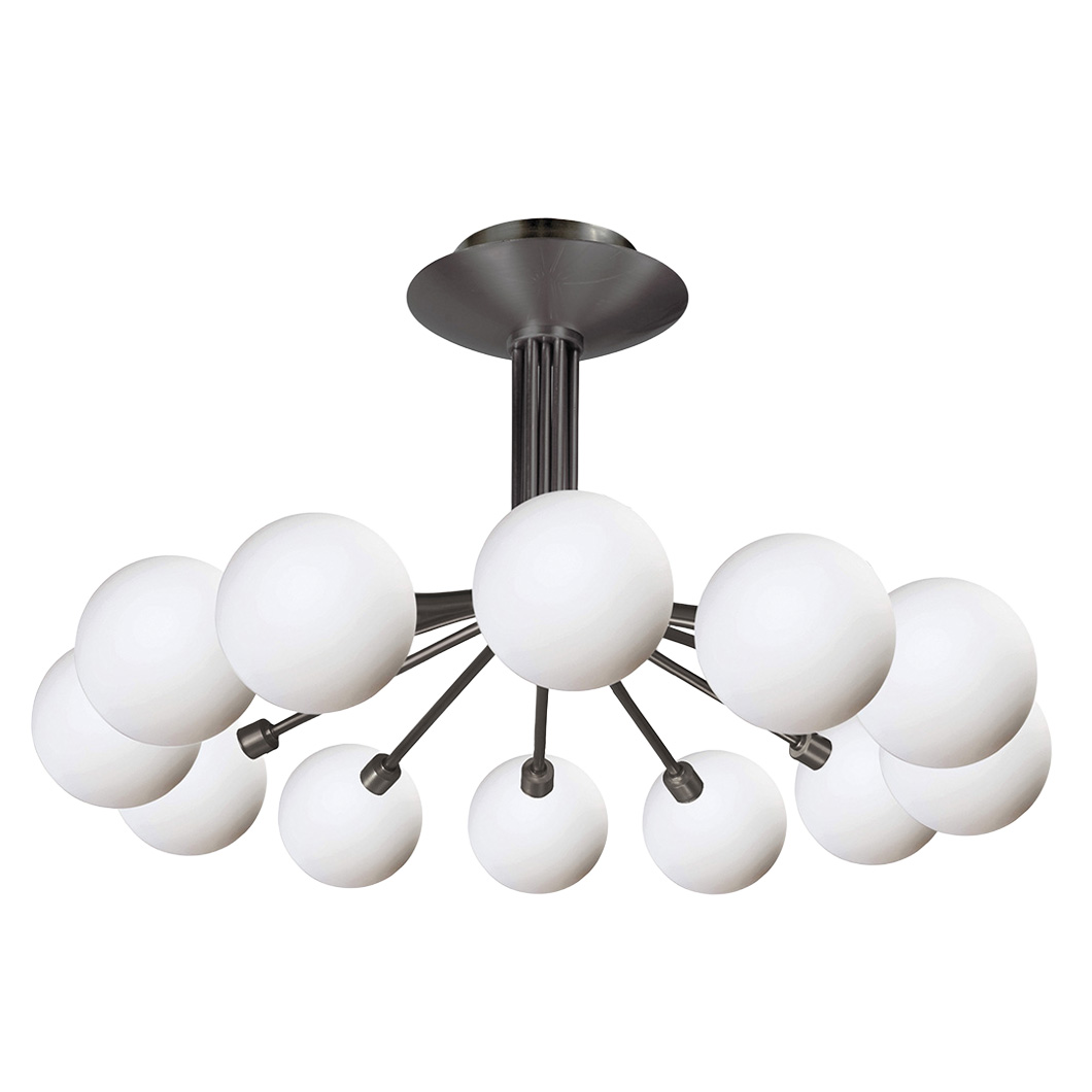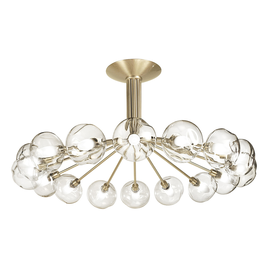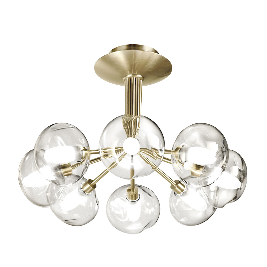 Exhibiting refined elegance, the Perla Pendant offers a multi-arm chandelier design that makes a decorative statement in a contemporary interior. Crafted from solid brass, the sleek structure features glass globe diffusers that emit a soft, ambient glow. Perla is available in four different sizes, offering an increasing number of glass spheres and metal arms. The sophisticated suspension light offers either 6, 8, 12, or 16 glass diffusers, each with increasing diameters and fixture heights.