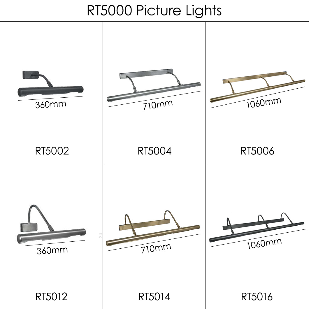 The clean, simple frames are available in a range of sleek satin finishes. Choose between bruni, satin nickel, or satin graphite for a subtle, contemporary look. This range is also available in some polished finishes on request - please enquire for more information. Install the picture lights in a gallery to highlight art, or even use them in the home to shine light on photographs and paintings. The RT5000 picture lights are not supplied with the required light sources as standard.