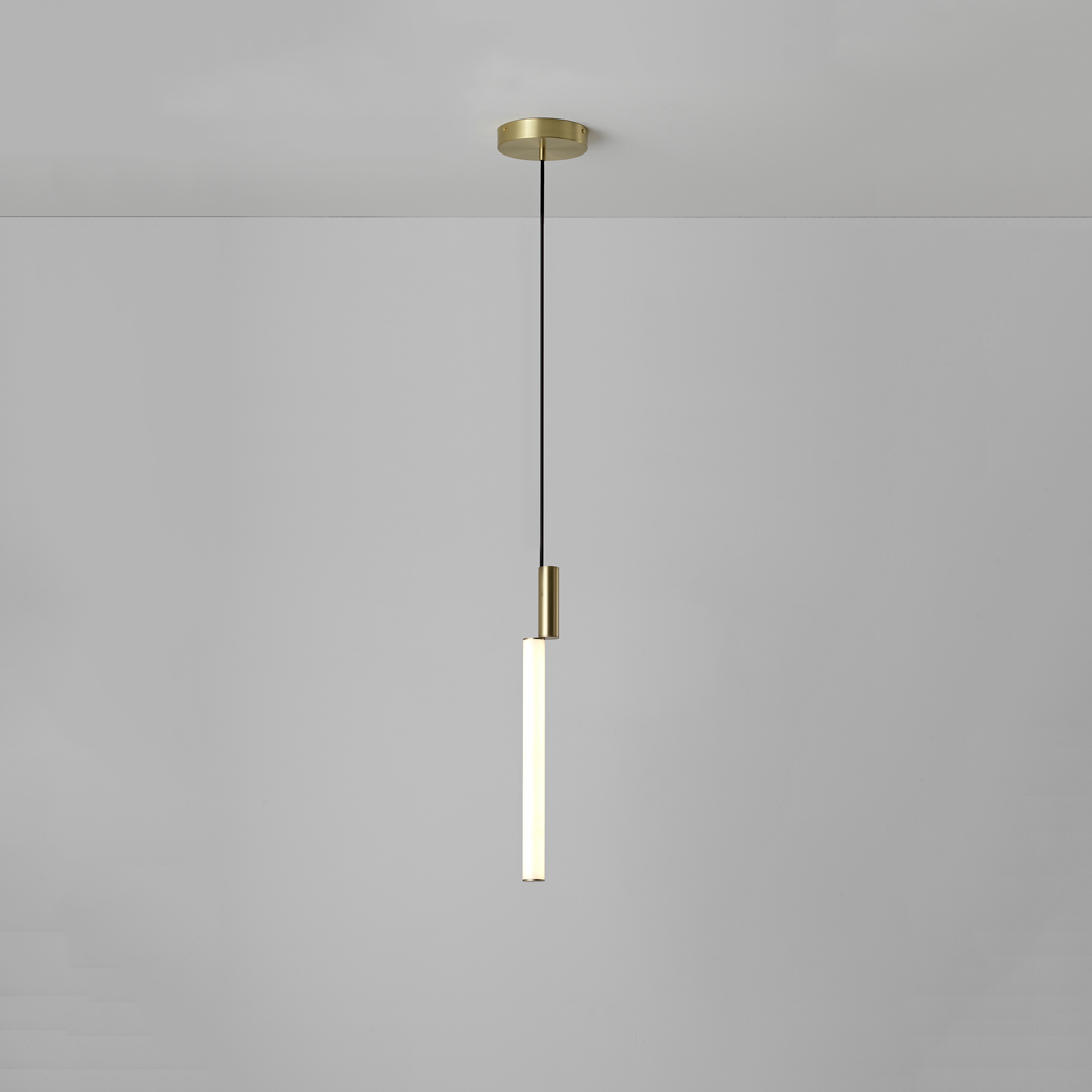 Signal pendant’s minimal cylindrical structure and contemporary brass design make it perfect as a stunning focal point to any modern-style space. Each pendant consists of two or more connected tubes, one of which is a smaller frame crafted from brass, whilst the other cylinder is a white polycarbonate diffuser. These two objects are semi-joined together in a unique fashion, creating an intriguing architectural illusion. Housing the built-in LED light, the tubular diffuser emits direct light in 360°, filling the entire room with a cosy warm white glow.