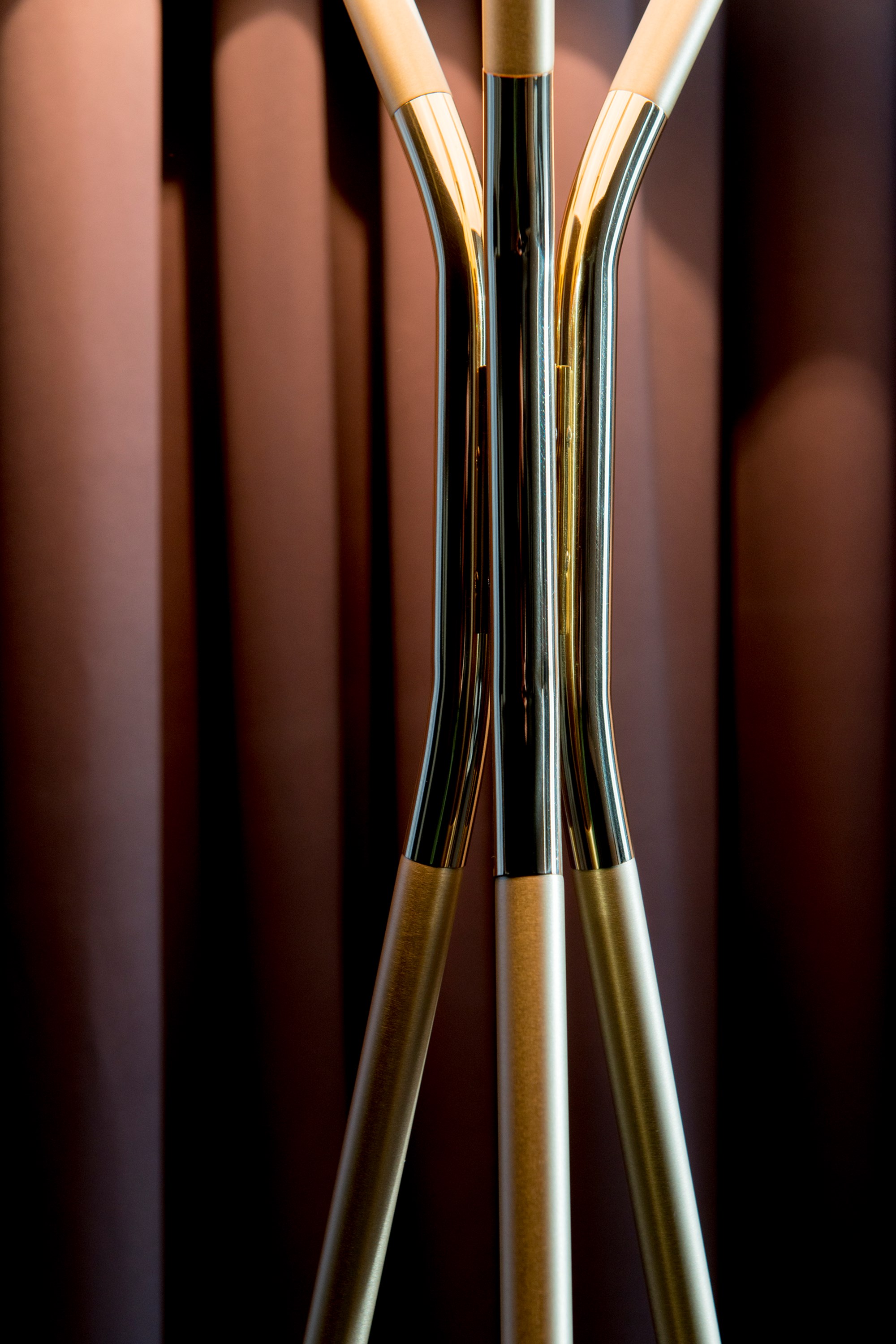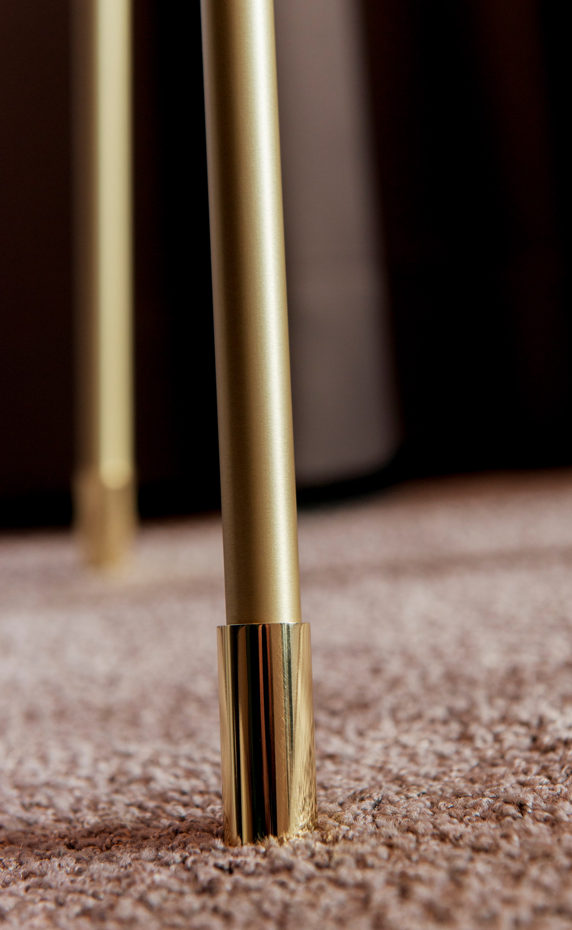 Distinctive with its multi-sided lampshade, this stunning floor lamp builds intrigue with its bold design. The geometric designed lampshade has many sides and angles, which combine to form the overall cone-shaped lampshade. With three slim brass legs to stand on, the attention is focused on this detailed textile lampshade, available in a white or black chinette finish. To add subtle elegance to this stand, select two contrasting finishes to achieve the stylish two-tone aesthetic. The main finish covers the entirety of the three-legged lamp stand, while the secondary finish alters the coating of the connecting clip at which the legs meet.