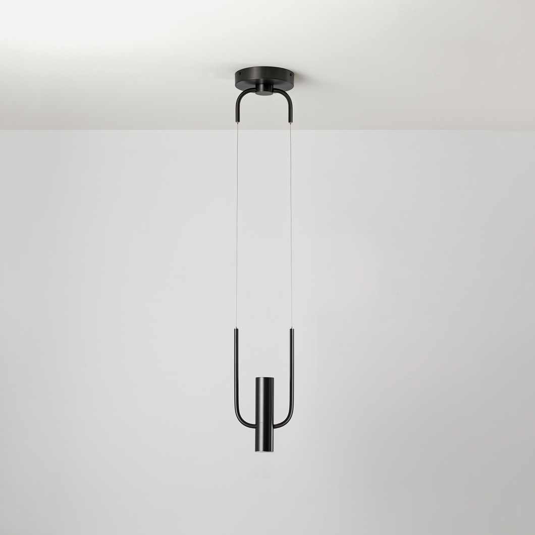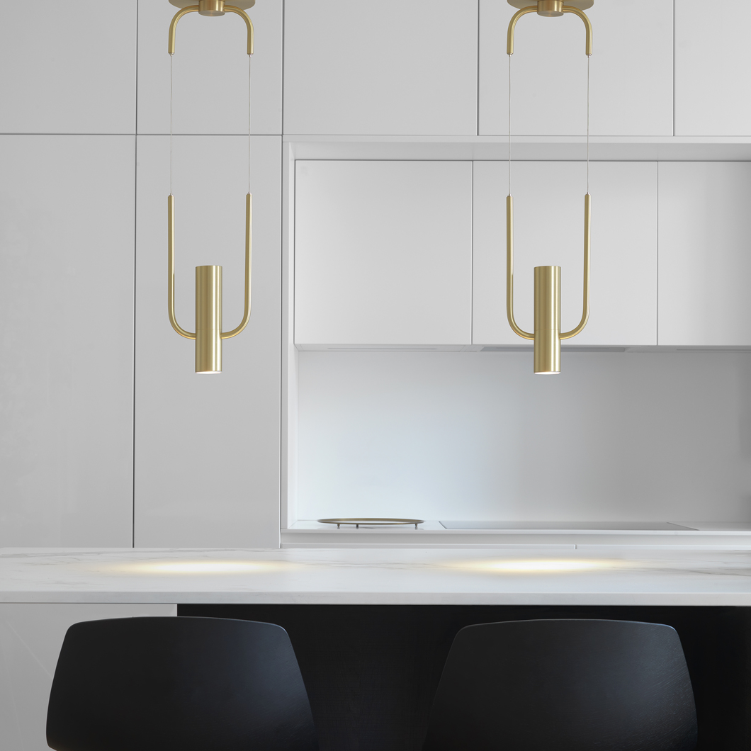 With a design based on an artistic representation of a storm, this pendant is fascinating in its minimalist form. An elegant design defined by its clear lines and shapes, Storm represents the intense and powerful nature of this weather. This pendant is unique in its structure, with the top half of its brass frame connected to the ceiling rose, and the bottom half suspended from the dual sheathed metal cables. The result is a rounded-rectangular shape, boasting delicate curves and a symmetrical form. The bottom of this frame holds the cylindrical spot which houses the LED light source. Storm emits a powerful and direct LED light, covering the surrounding area in a warm white glow.