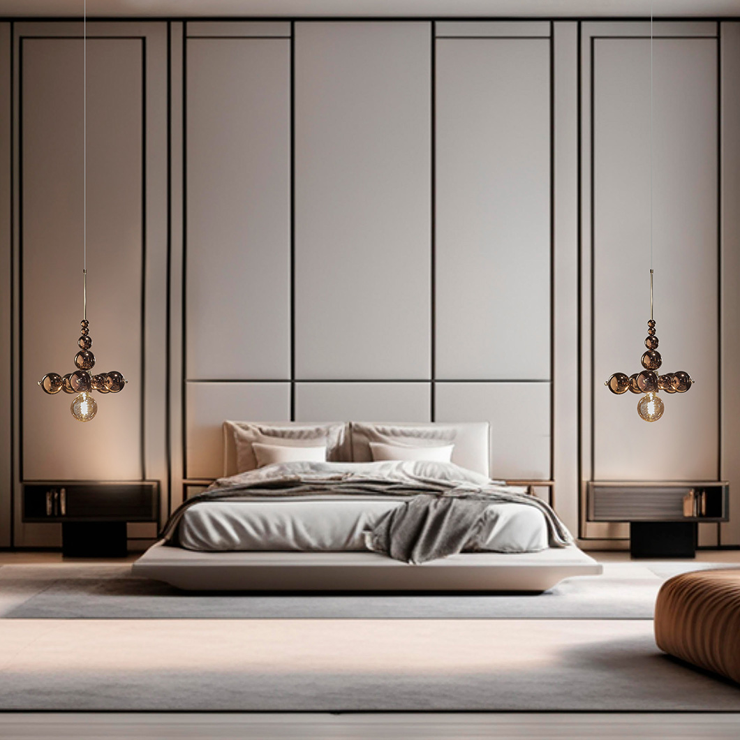 Coral is a perfect addition to a modern bedroom, installed as a pair of suspended bedside lamps. This sublime luminaire also impresses when positioned over a long dining table, providing a decorative feature to a contemporary dining area.