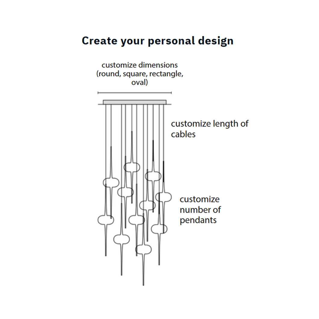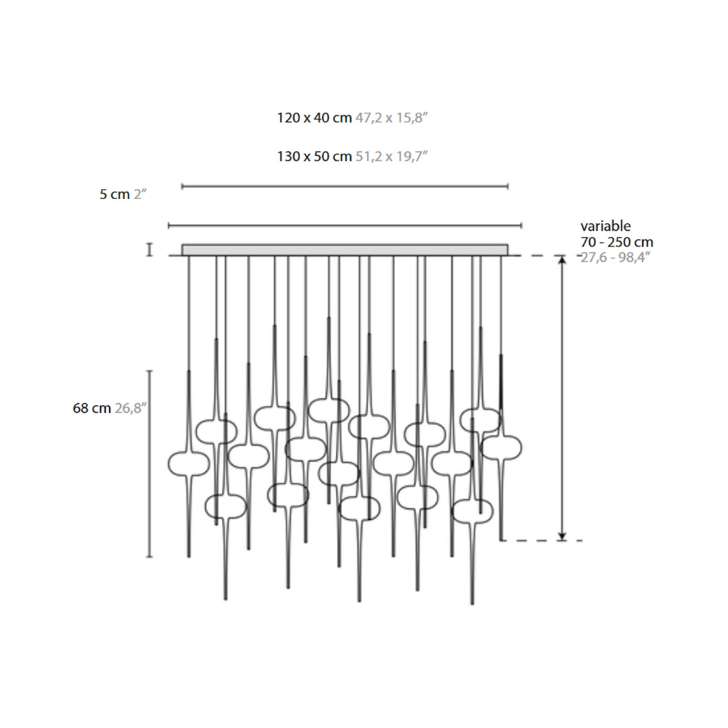 This stunning suspension light has a variable cable height, from 70 cm up to 250 cm, allowing for adaption to fit the space. Install Encounter in a luxurious commercial environment such as a hotel lobby to illuminate the welcome area. Alternatively, this sublime chandelier looks great suspended in a dining room over a central table.