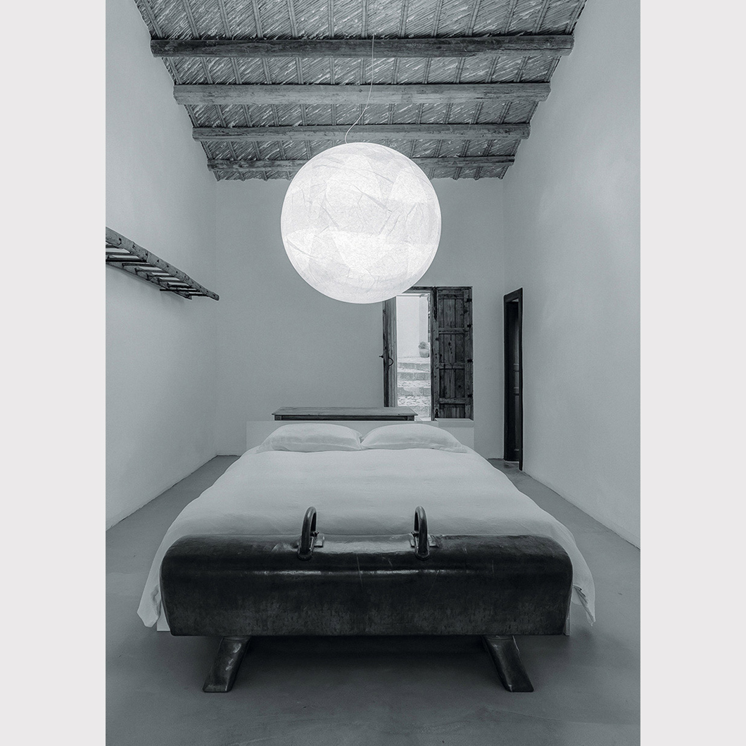 The moon pendant is available in four versions. These sizes range from a more discreet 60cm diameter perfect for smaller spaces, to a massive 120cm best suited to be hung from larger, more open interiors. The smallest variant is also available in a dual emission version, allowing for output of beautiful LED light in two places. Moon 200, a monumental Extra-large version featuring a 10 metre cable, is also available upon request. Please contact us for prices and more information. US versions are also available, contact us for prices and information. This version is delivered usually delivered in 4 to 6 weeks. For prices and further information please contact us. Delivery approximately 2-3 weeks for other versions. LED included.