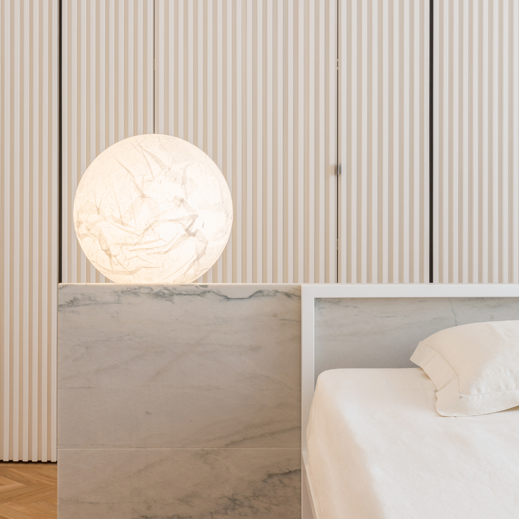 Moon T includes a dimmable LED light source, allowing you to change the atmosphere of your room instantly with varying levels of light intensity. This stylish luminaire is perfect both for display purposes or functioning as a beautiful and powerful table lamp for modern and oriental themed spaces. US version available, please contact us for more information. LED included.