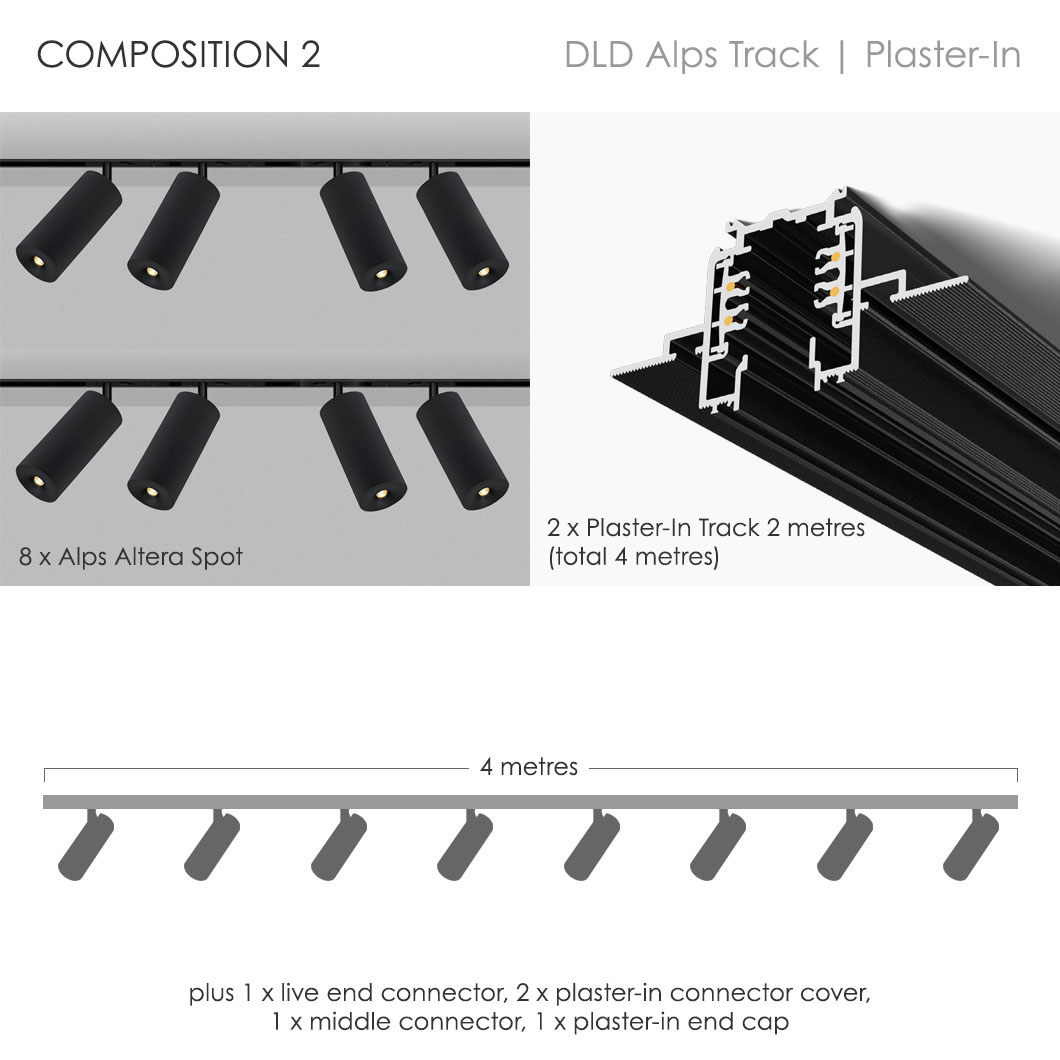 Plaster-in track lighting mades easy - introducing our DLD Alps architectural trimless track systems pre-prepared in ready-made packages. Our very clever lighting design experts have created contemporary plaster-in track packages, based on our most requested configurations. Minimalist in style and ideal for both residential or commercial use, our Alps packages take the hassle out of track lighting. Our sleek trimless track option is perfect for installation where the track needs to be hidden into the ceiling - this is easiest to achieve at the beginning of projects but our recessed track can also be retrofitted. For a no fuss option check out our Alps surface mounted track system packages.