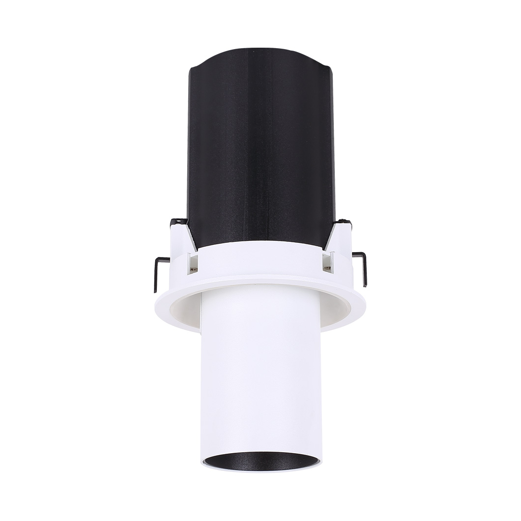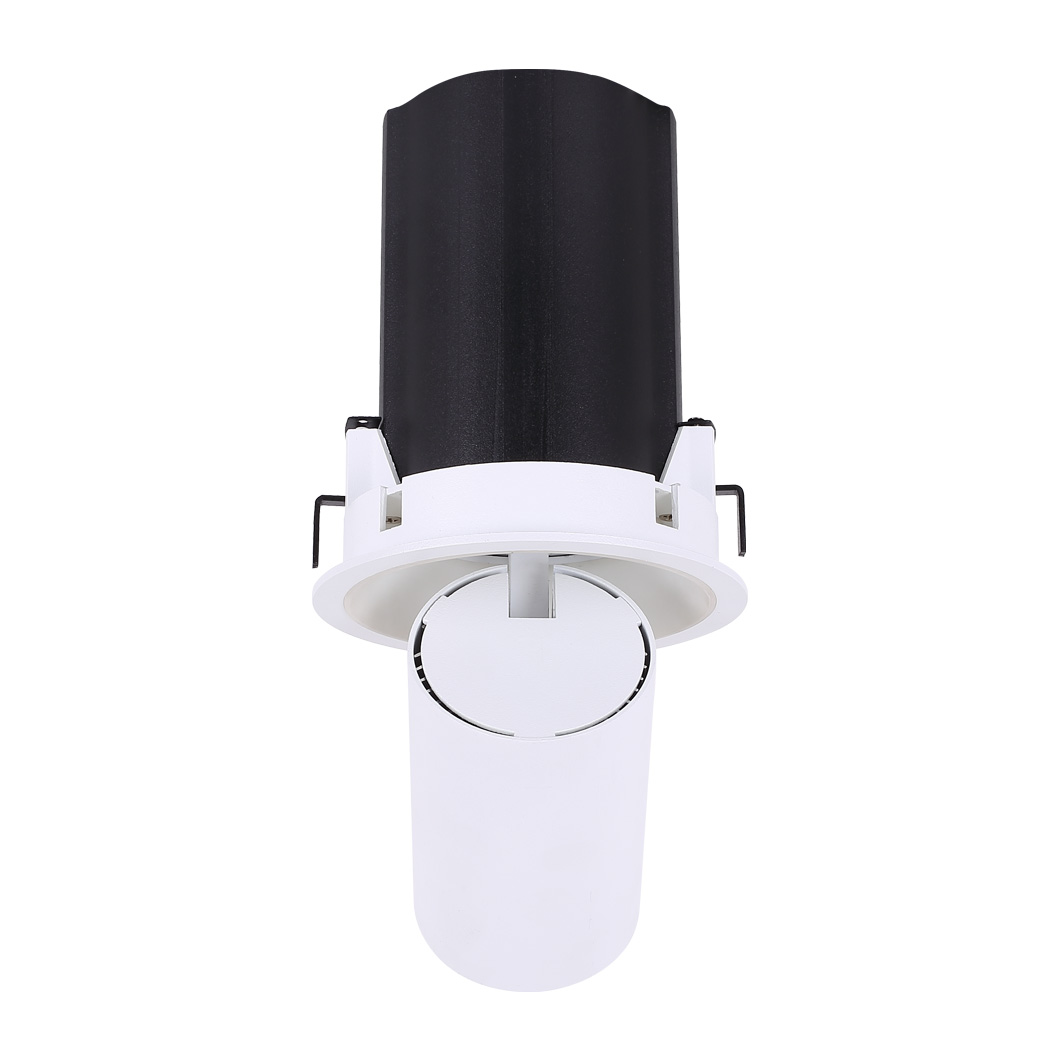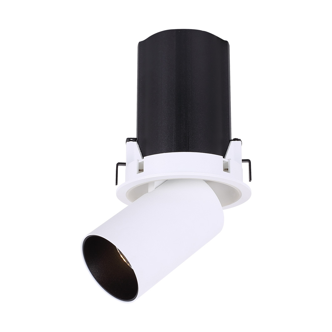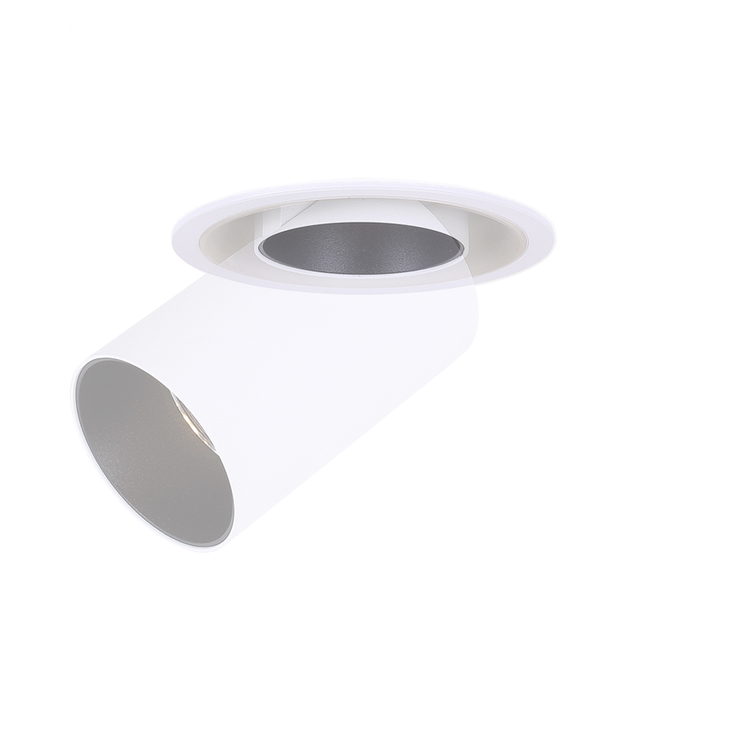 This is the adjustable pull out recessed spot light module. This allows you to swap between a downlight or spot light style through a simple mechanism whether you want something more discreet with a straight beam of light or an architectural aesthetic with adjustable beam. With 2 power versions/sizes available, choose between higher or lower illumination effects or even mix and match for different situations. The head can be tilted from 0-90 degrees and rotated by 355 degrees to light almost any angle which could change depending on the scenario. With integral LED technology, choose between 2 colour temperatures and 3-5 beam angles to find the perfect light projection for a desired effect. Available in 3 finishes: matt black, matt white and silver grey. Recess baffle in black. With 3 dimmable options available and also a non-dimmable option if not required.
