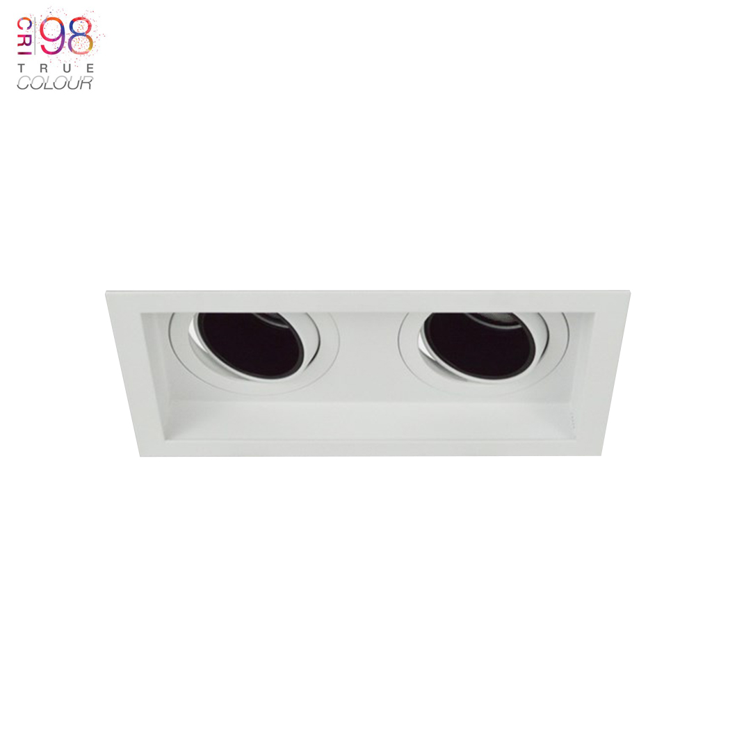 The twin version of our recessed downlight, the DLD Andes 2 couples a flexible 24º adjustable tilt and 355º rotation with an IP54 rating, making this the perfect bathroom-friendly directional light fitting. With deep black baffles to reduce the visible glare and our True Colour CRI98 LED chip, the Andes range of downlights renders colour with outstanding accuracy and clarity.