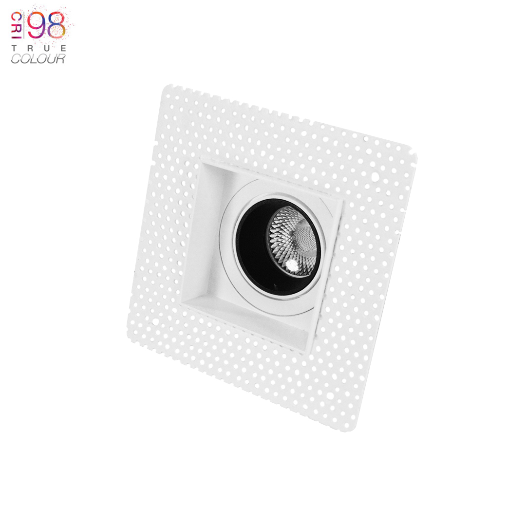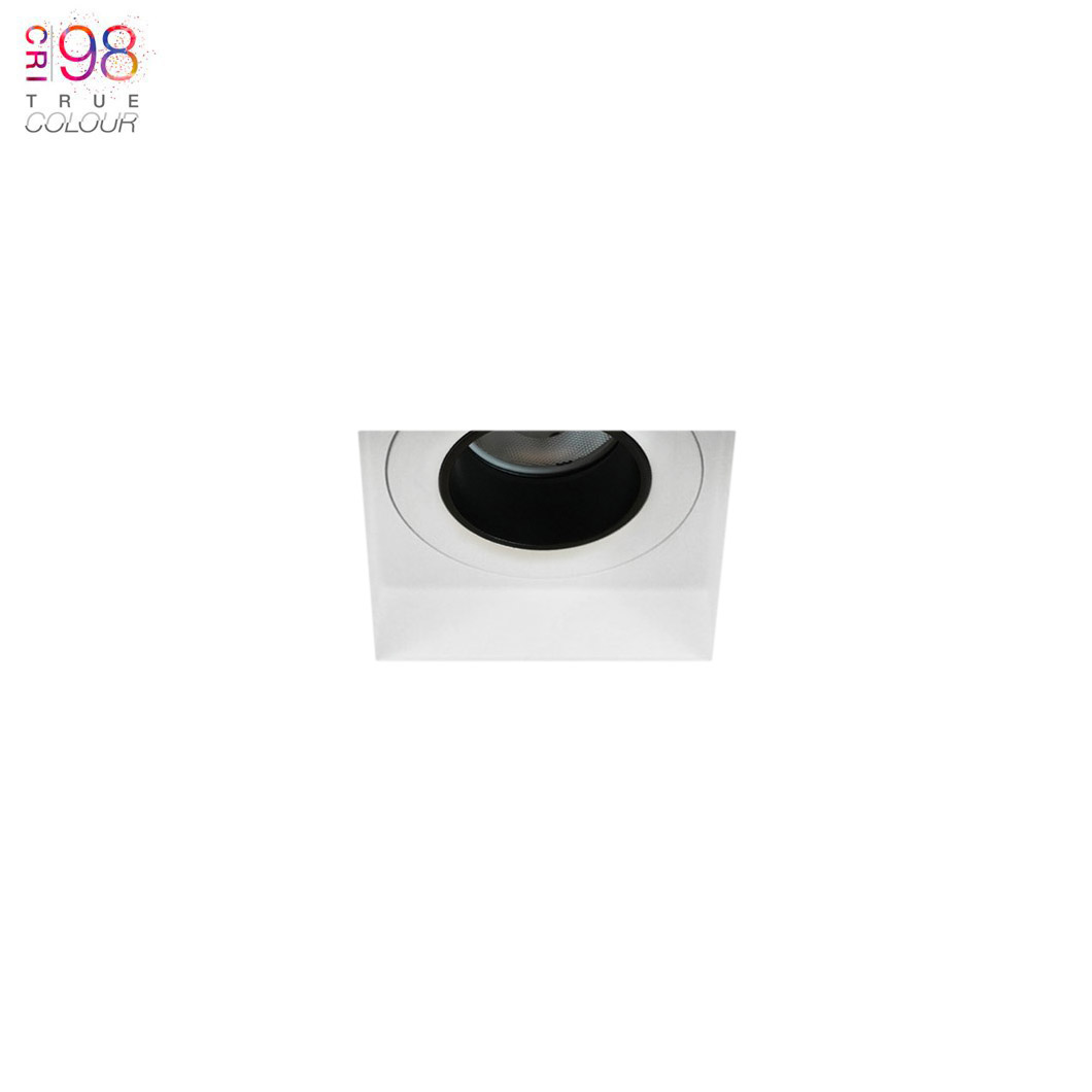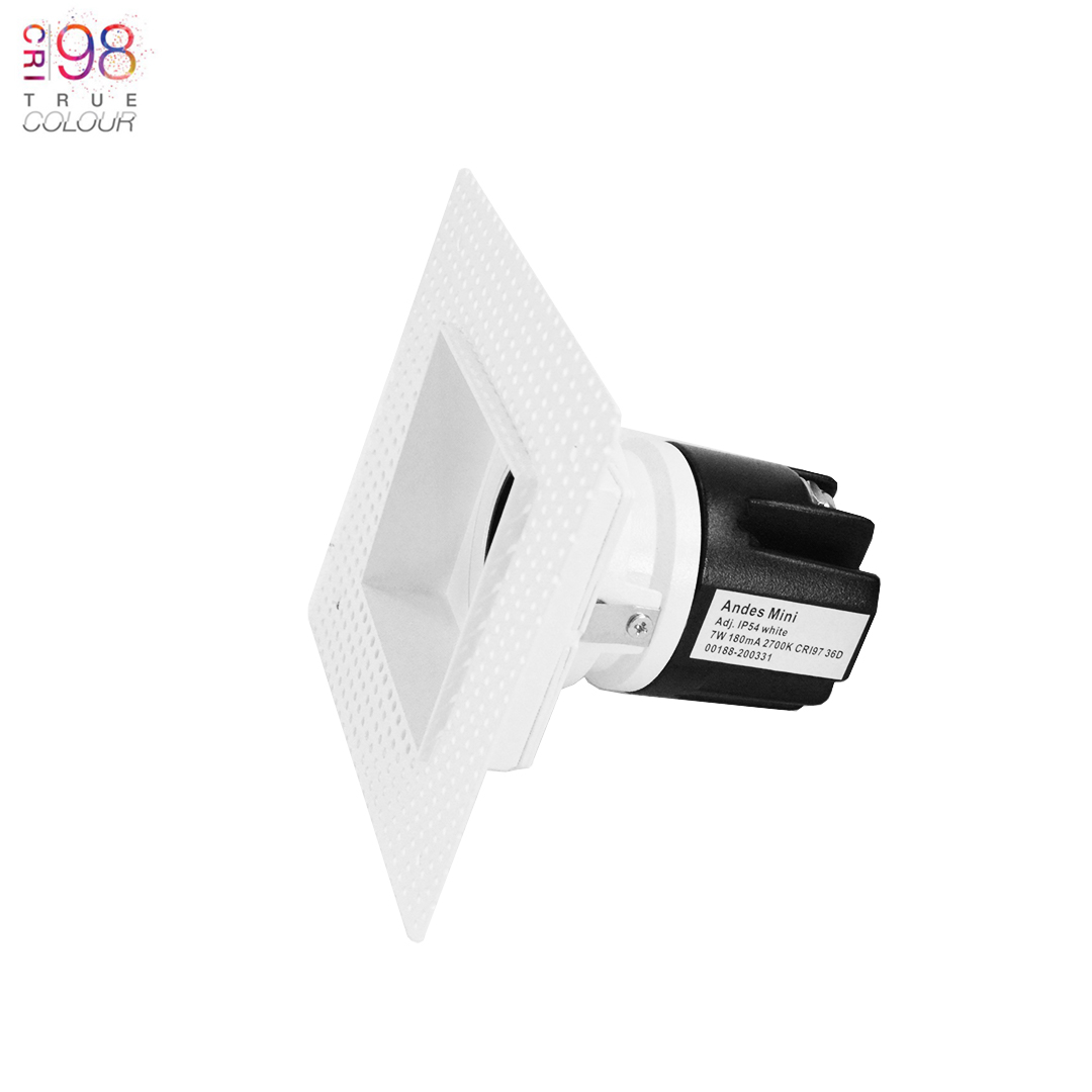The square variation of one of our top plaster in LED downlighters, the Andes Mini recesses into the ceiling for a discreet yet effective aesthetic. Equipped with a double anti-glare design, the black baffle and deep recess frame pair together to create an architectural effect. At just 6cm in diameter, the Andes Mini is ideal as a downlight for bathroom zone 1 (it's also suitable for standard rooms) thanks to the IP65 rating. The Andes Mini fixed produces a beam of light, available in multiple angles, directly downwards to illuminate furniture, shelves and more. As part of our True Colour range, this downlight has a CRI98 integral LED chip, rendering colours around your home at the highest quality.