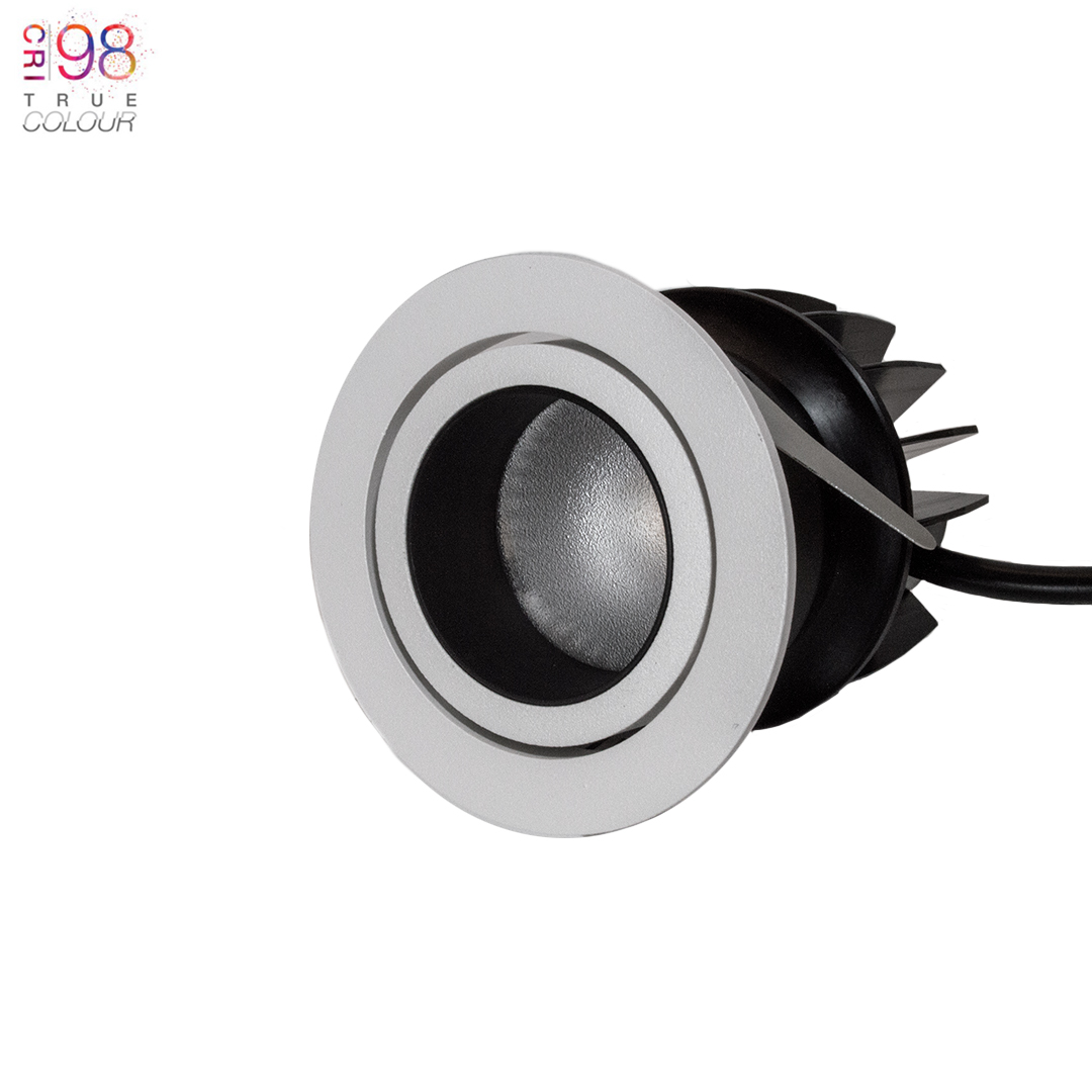 Luminaire in die-cast aluminium luminaire with steel housing with heat sink in forged aluminium for optimum heat dissipation. Bezel in black or white. Reflector in PC plastic. IP44 rated, suitable for installation in bathroom zones 1, 2 and 3. Complete with anti-glare frosted lens. Fixed version also available. Our downlights are fire rated as standard, and have lasted over 60 minutes in independent tests by Cambridge Fire Research. Fully dimmable, supporting 0-10V, TRIAC or DALI drivers - see dropdown options.