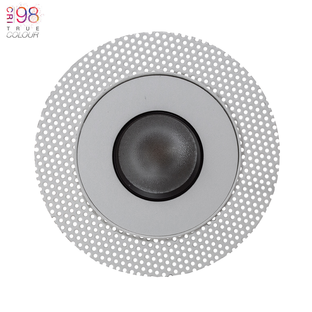 Atlas Baffle LED plaster in downlight fully recesses into the ceiling, creating a neat trim-less finish. Featuring a removable light engine with black baffle and white bezel, and available with a beam angle of 15º, 38º or 60º. The light engine can be simply accessed through a simple twist mechanism, which allows for easy maintenance. Atlas is a seamless flexible fitting suitable for using as a focused spotlight / wall washer or to flood an area with light. Utilising the up-to-date True Colour CRI98 LED COB technology, the Atlas range render colours with outstanding accuracy.