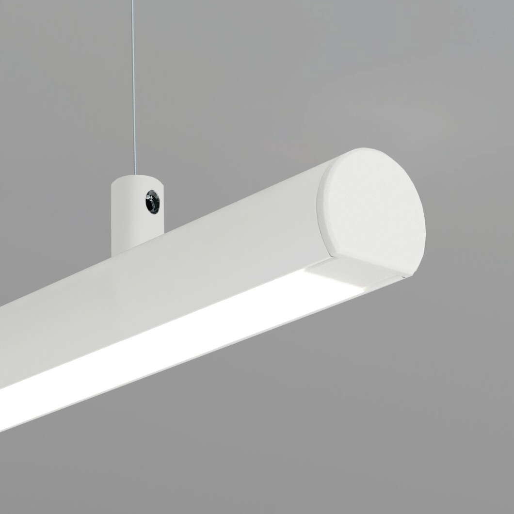 The DLD CurvaLine linear profile kit, suspended as a pendant, features a cylindrical minimalist design of less than ⌀20mm. The extruded aluminium profile is finished in black or white, and supplied with a pair of matching end caps, ceiling fixings and a frosted diffuser to reduce glare from the light source. DLD CurvaLine is perfect for illuminating a long table or kitchen island in a modern home, or used in a bespoke multiple arrangement for a commercial project.