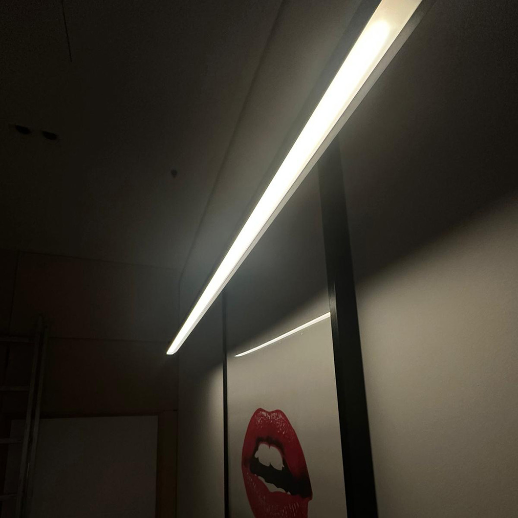 Supplied with a 5m reel of DLD Lightflow CSP 10W LED tape in 2700K or 3000K. With a width of 8mm, the Lightflow CSP LED tape can be installed in the profile (which has an internal width of 20mm) either as a single line or a double line for a more powerful light output. The included suspensions cable allow for a maximum drop of 5m, although this can be adjusted during installation. The power is fed through the suspension cables, so no need for an additional power cable alongside the fitting. Supplied with either a phase dimming driver or DALI driver. The driver is installed remotely from the fitting.