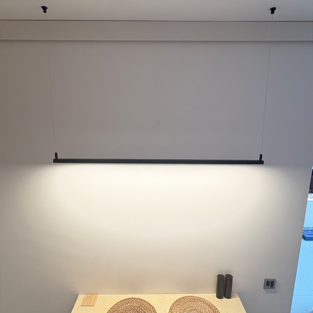 With a beautiful minimalist design, the DLD LumaLine is a linear profile that is suspended as a pendant. The extruded aluminium profile is finished in black or white, and supplied with a pair of matching end caps and ceiling fixings. A sleek bevelled-edge design combines with the frosted diffuser to reduce glare from the light source. DLD LumaLine is perfect for illuminating a long table or kitchen island in a modern home, or used in a commercial project.