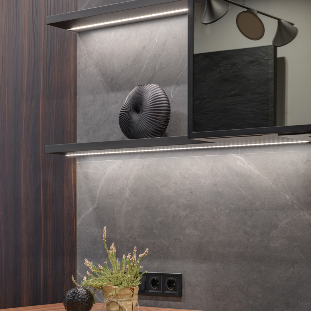 With a clean cut look and easy installation, the DLD Miniline track system offers high adaptability and minimalist styling. Avaliable in 2m lengths and two colour options, Miniline track is highly customisable.