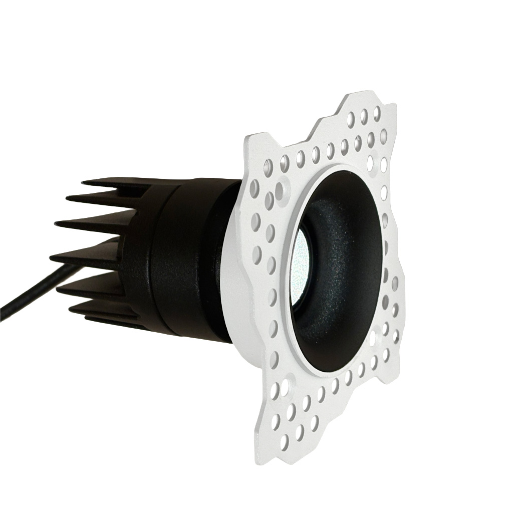 The plaster-in frame is fixed directly into the ceiling before being plastered and decorated for a seamless finish. The LED light engine is easy to pop in and out of the frame, making post-installation maintenance simple. Nebo is available in white or black finishes, with white or black inner baffle options. 2700K or 3000K colour temperatures. An optional fire ring accessory is available to make the fitting fire-rated. Dimmable with either 0-10V, TRIAC or DALI dimming drivers - see the dropdown or the specification tab for options.