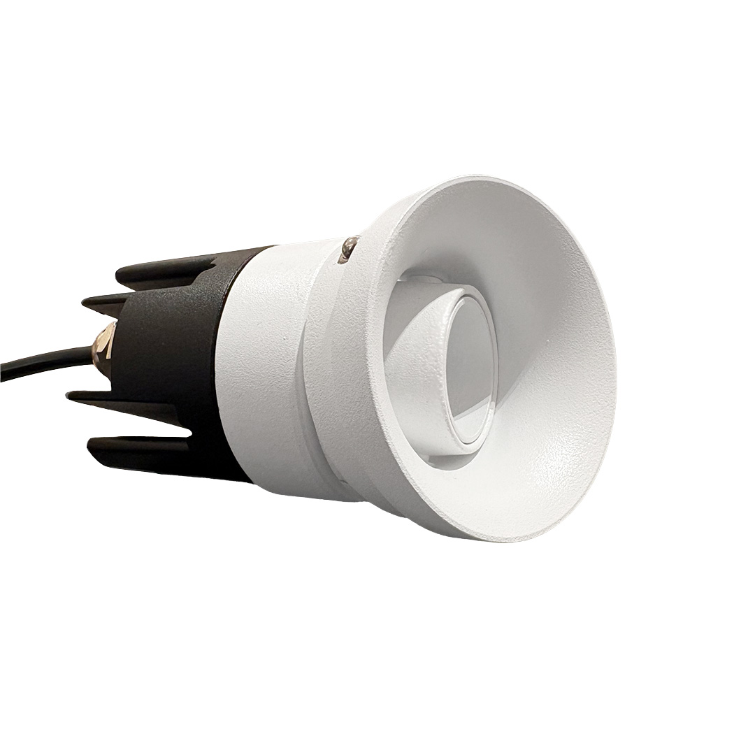 Nebo is a trimless, plaster-in downlight that recesses into the ceiling. The versatile fitting has a medium 36° beam angle, offering a diffused spread of light. Nebo's IP65 rating, paired with an adjustable 25° tilt, makes it an ideal directional downlight for installation in bathroom zone 1 as well as dry areas. Featuring our True Colour CRI98 LED technology, Nebo has exceptional colour rendering accuracy.