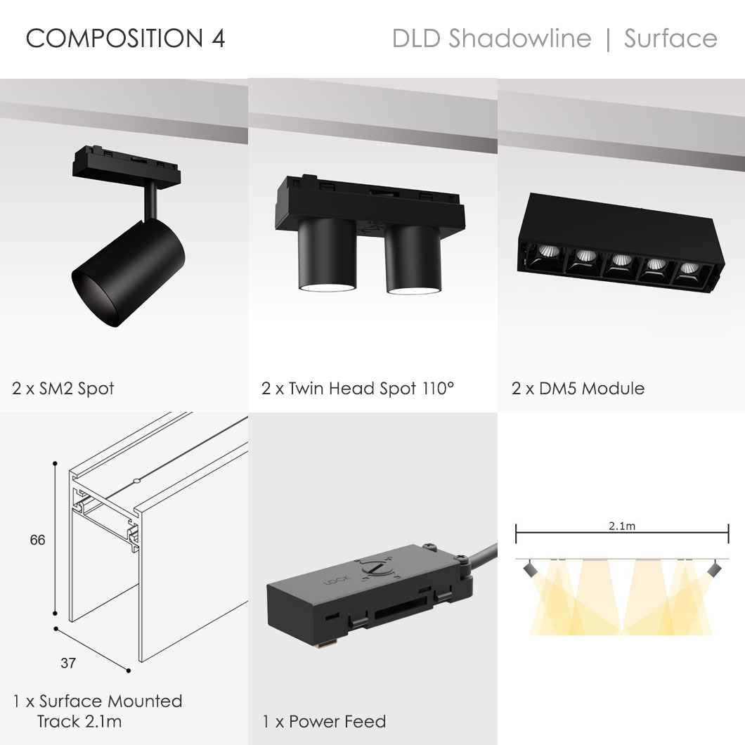 Track lighting made simple - discover our signature DLD Shawdowline range of ready-made surface mounted systems. Complete with everything that you need for installation, take the stress out of creating your own design by choosing from 5 of our most popular track compositions. Our surface mounted track packages are the ideal solution for installation with minimal fuss.