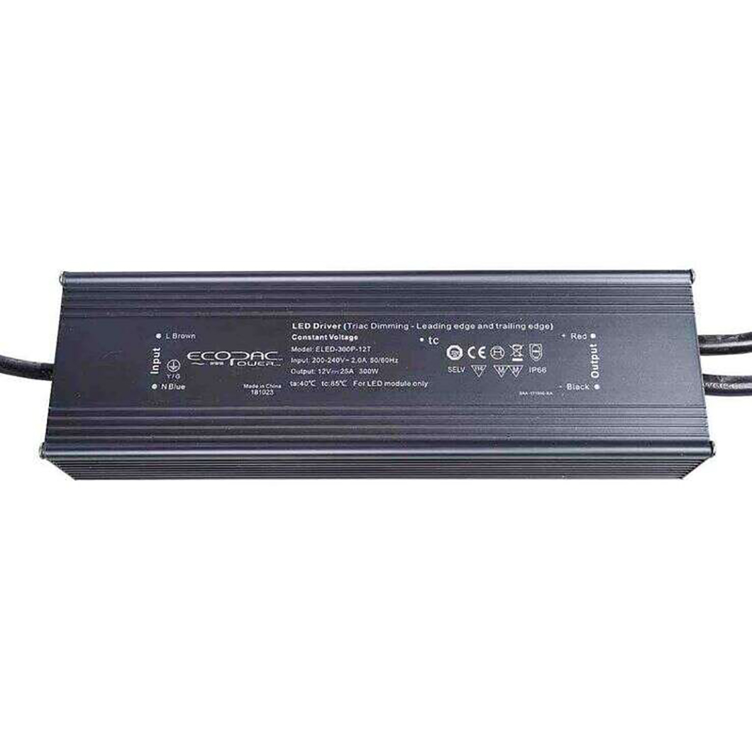 ELED-300P-24T is a constant voltage mode output LED driver. This driver supports leading and trailing edge TRIAC dimmers. For more technical info, please see the datasheet in the Downloads tab below.