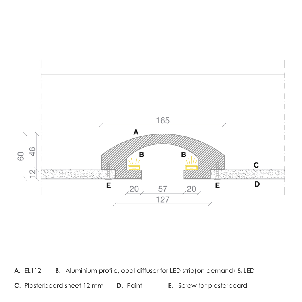The EL112 has an optional aluminium heat sink profile and opal diffuser which can be used with LED strip with a maximum width of 20mm.