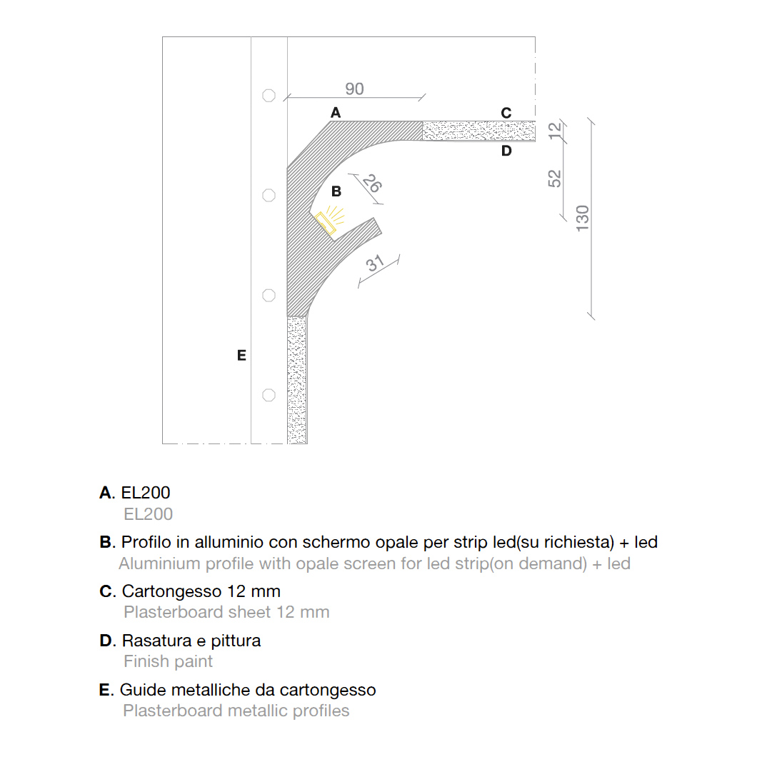 Designed specifically for creating a contemporary yet subtle ambient lighting effect, the Eleni EL200 recessed linear profile cornice adds a soft diffused light in the join between wall and ceiling. By recessing the cornice into 12mm plasterboard, EL200 is then plastered in and decorated to produce a lighting scheme that is totally unified.