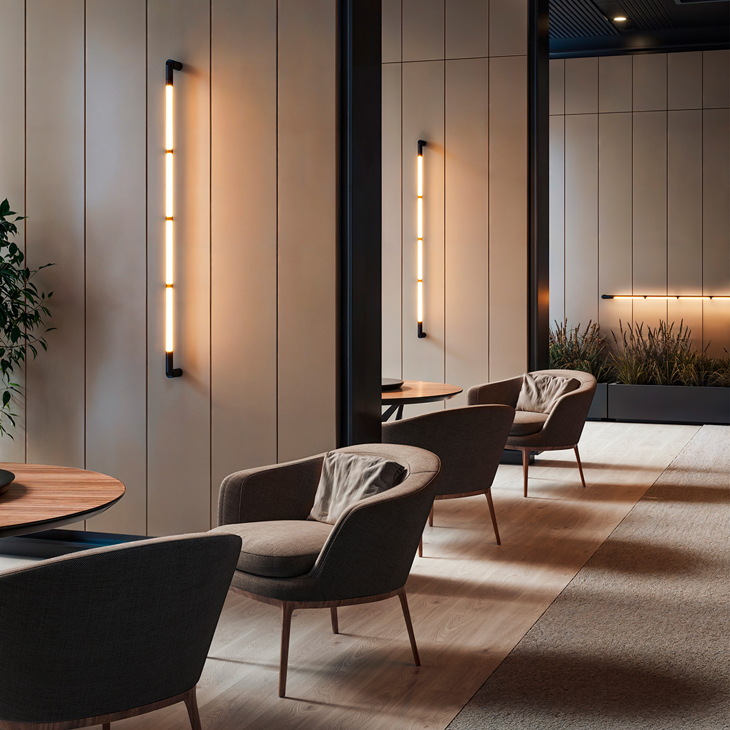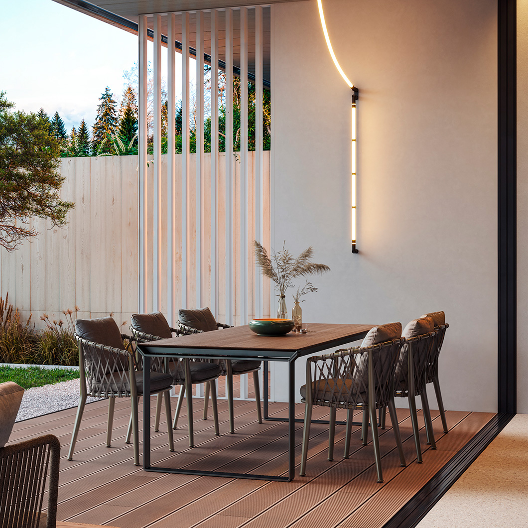 Install Arco by patio furniture to illuminate the space and become a decorative feature. Or, use the elongated wall light to highlight a door or pathway.