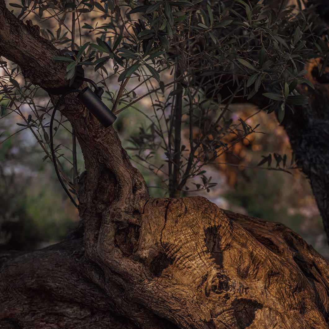 Minimal and contemporary, CLAP by Faro Barcelona is an outdoor lighting system that combines architectural and multifunctional elements. Compatible with spikes, beacons, wall fixtures and pendants to maintain the continuity of design, this version is supplied with a tree mounting accessory. Blending almost invisibly into the background, the emphasis is on the accent lighting effect.