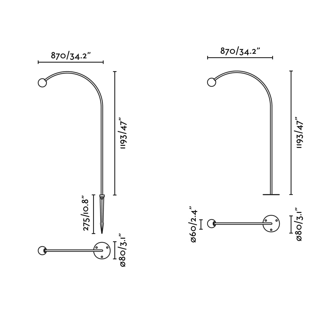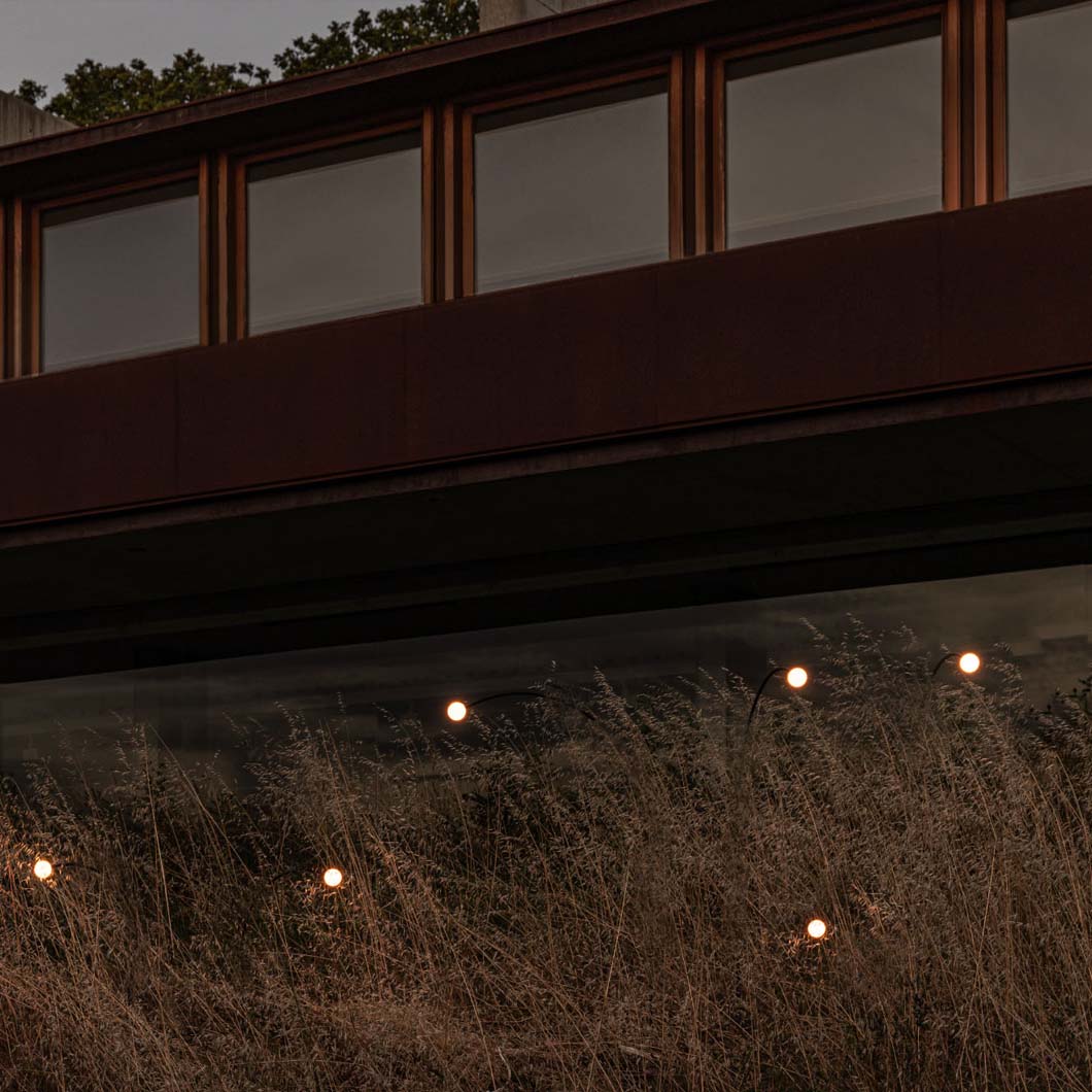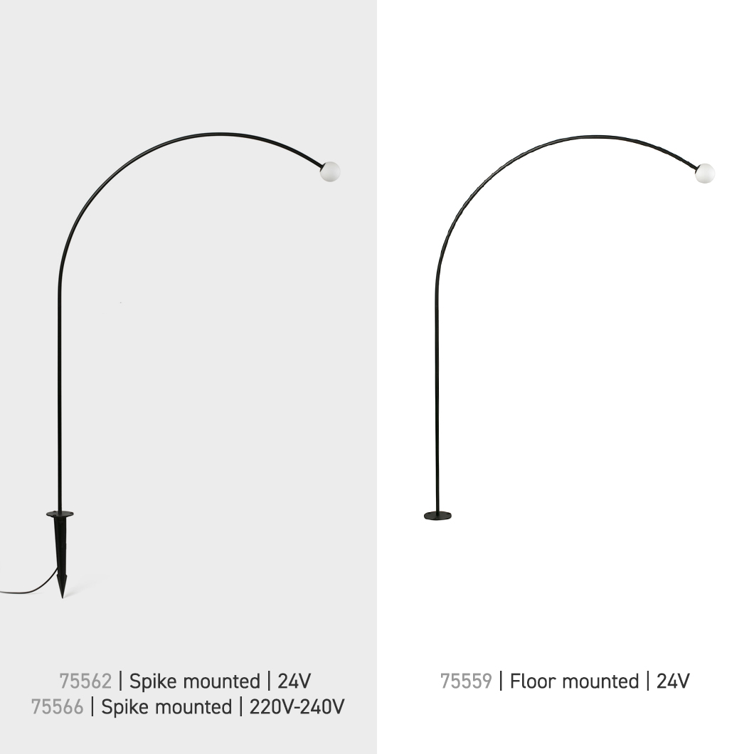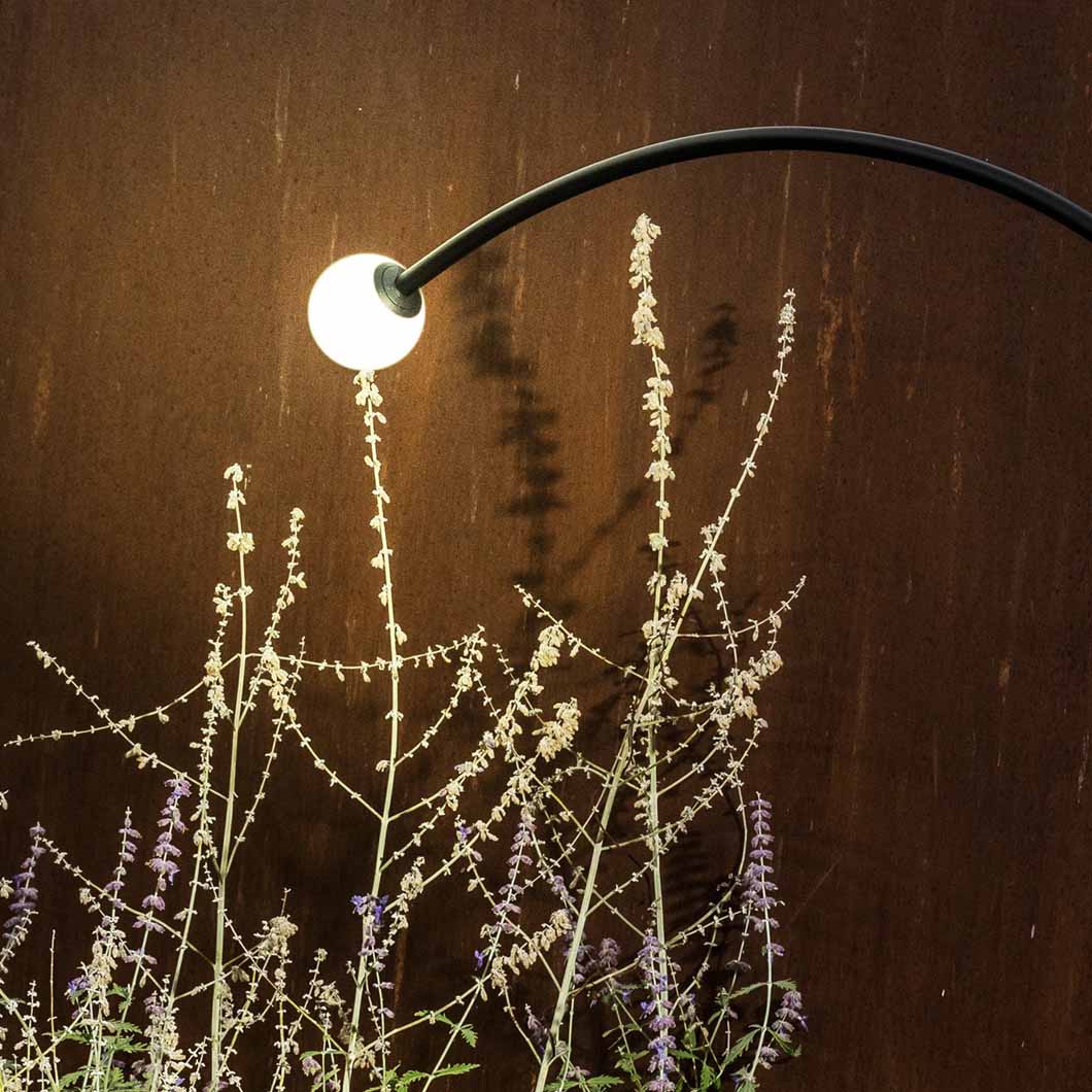 With a contemporary and minimalist design in black stainless steel, the sleek CUCA 1193 bollard light by Faro Barcelona has an arched arm and spherical diffuser. CUCA 1193 offers a soft and warm 2700K light. At night the black structure disappears into the background and allows the light to seem as if it magically floats in the air, creating a beautiful and elegant scene. Thanks to its IP65 rating, CUCA is resistant to water and dust, making it durability in any weather conditions.