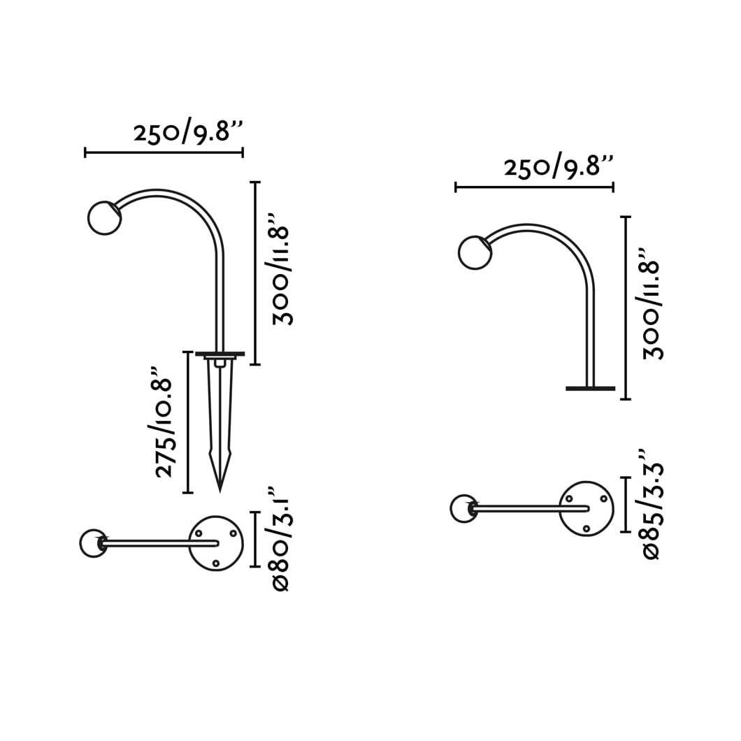 The CUCA 300 bollard light is the smallest in the family. With a contemporary design in black stainless steel, CUCA has a minimalist structure with an arched arm shape with a spherical diffuser that offers a warm 2700K illumination. At night the black structure disappears into the background and allows the light to seem as if it magically floats in the air, creating a beautiful and elegant scene. Thanks to its IP65 rating, CUCA is resistant to water and dust, making it durability in any weather conditions.