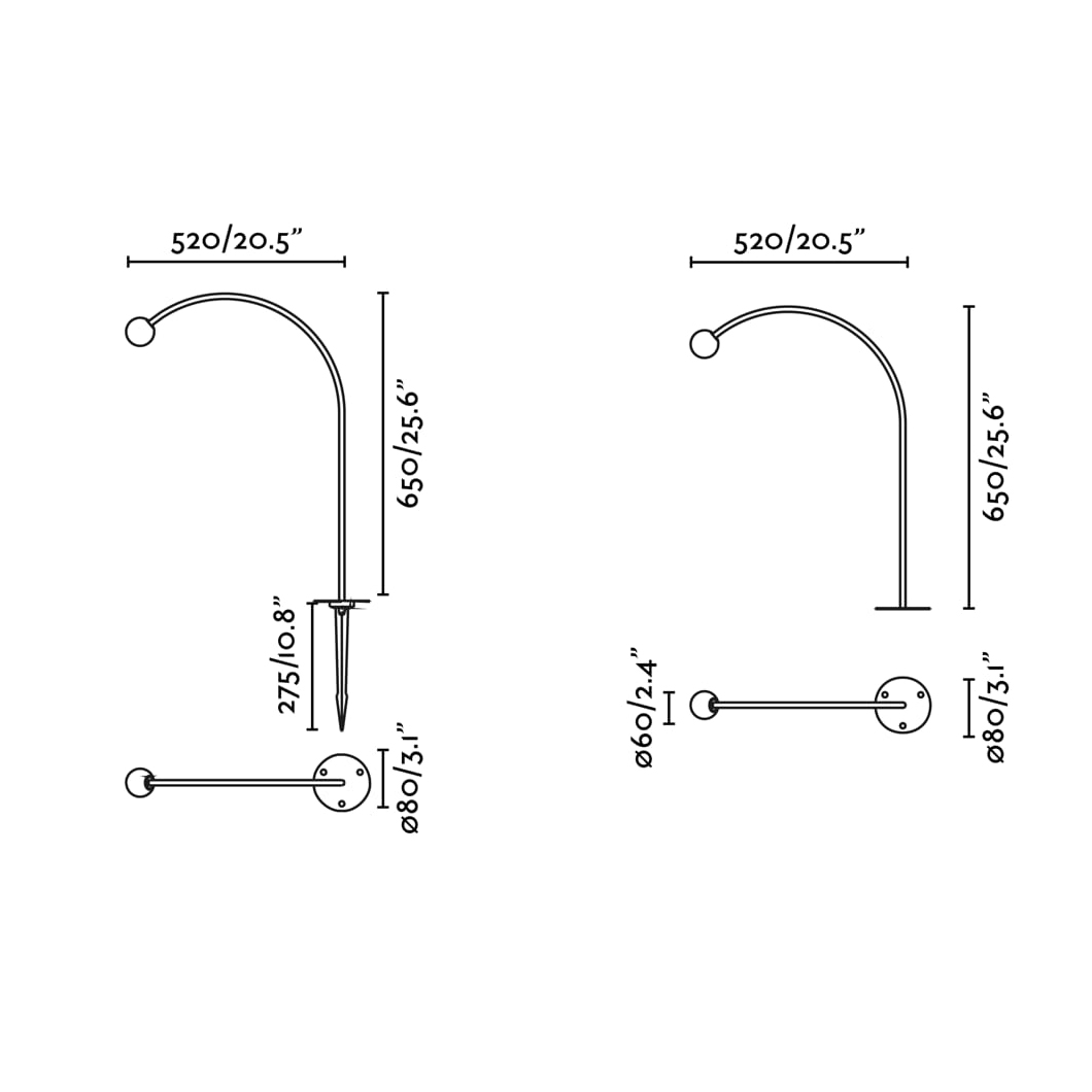 With a contemporary design in black stainless steel, the sleek CUCA 650 bollard light by Faro Barcelona has a minimalist structure. With an arched arm shape and spherical diffuser, CUCA 650 offers a soft and warm 2700K light. At night the black structure disappears into the background and allows the light to seem as if it magically floats in the air, creating a beautiful and elegant scene. Thanks to its IP65 rating, CUCA is resistant to water and dust, making it durability in any weather conditions.