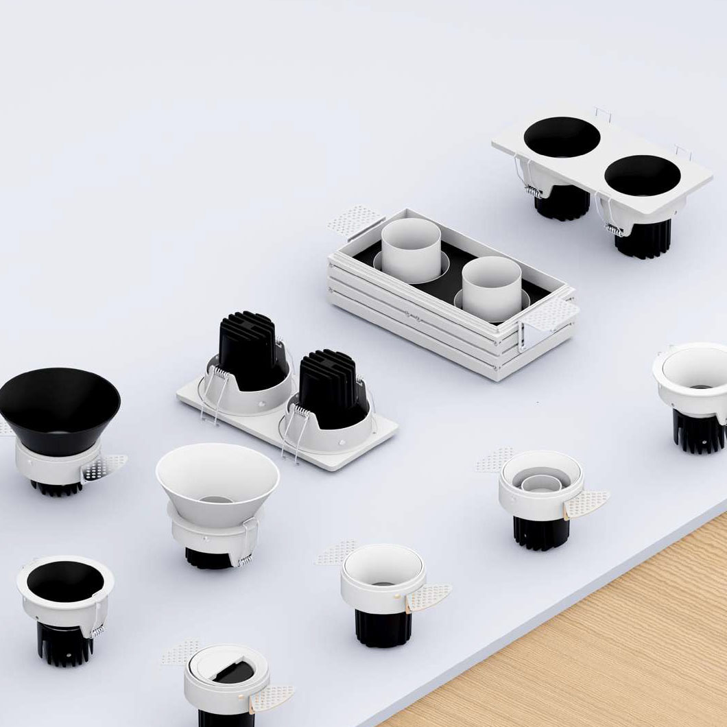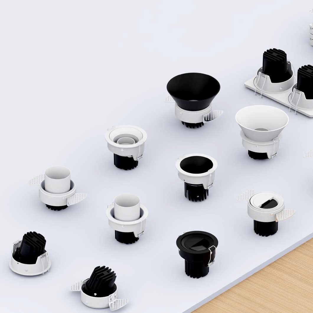 The Elios family by Faro Barcelona is a versatile and adaptable collection of architectural downlights with a choice of recessed frames and engines. The Elios Fix Tunable White downlight is supplied with a trim recessed mounting accessory.