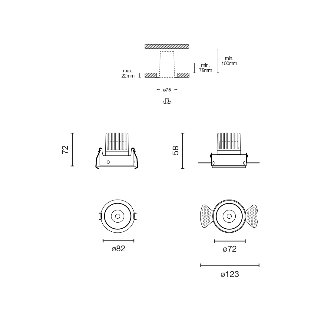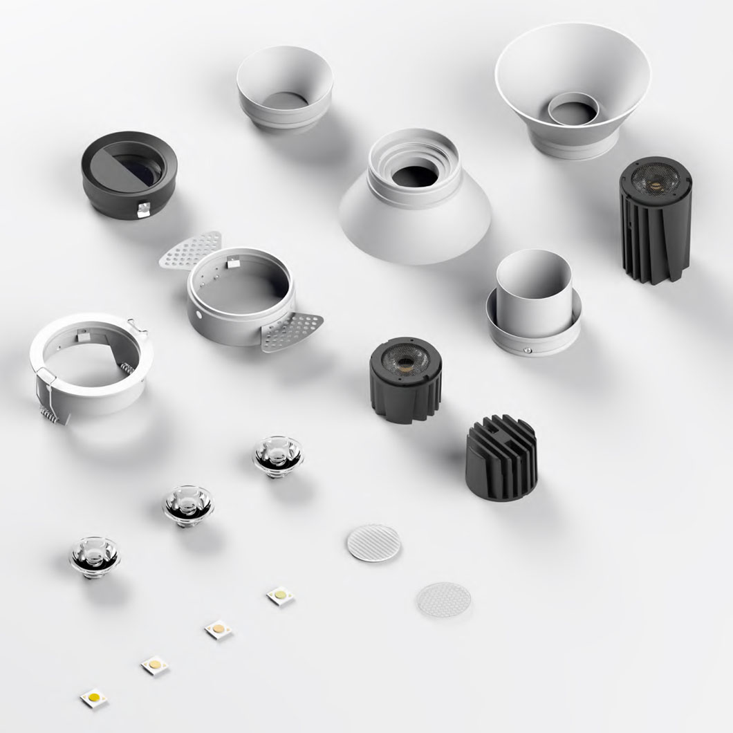 The 7W CRI90 LED has a tunable white colour temperature of 2400-6500K, with a choice of IP20 or IP54 waterproof ratings. The fixed optic is designed for general lighting that supports the natural human circadian rhythm. The human centric aspect of Elios makes the collection of luminaires perfect for lighting in both residential and commercial projects. Optional accessory lenses available for increased visual comfort and decreased glare.