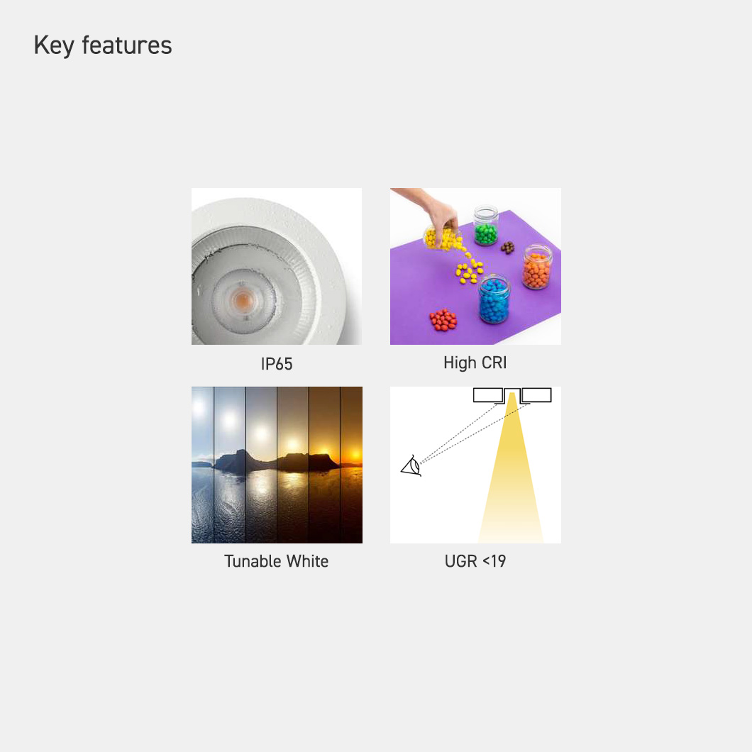 Combining a tunable white colour temperature of 2400-6500K with UGR<19 and a waterproof IP65 rating, Kobo by Faro Barcelona is a recessed ceiling light that ticks a lot of boxes. The 25W CRI90 LED has a 100° opal glass diffuser, designed for general lighting that supports the natural human circadian rhythm. The human centric aspect of the Kobo ceiling light makes it perfect for lighting in hospitals, clinics, gyms and even spas.