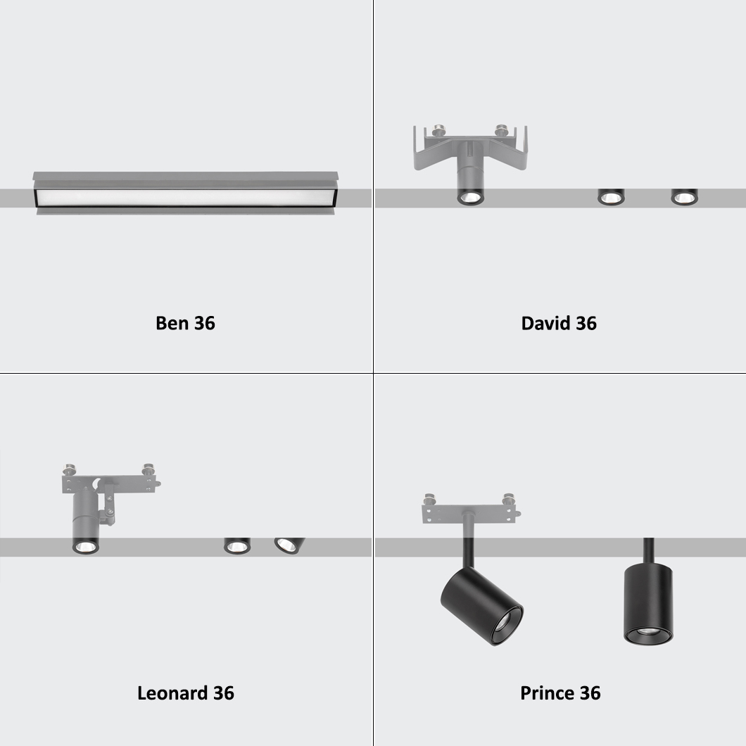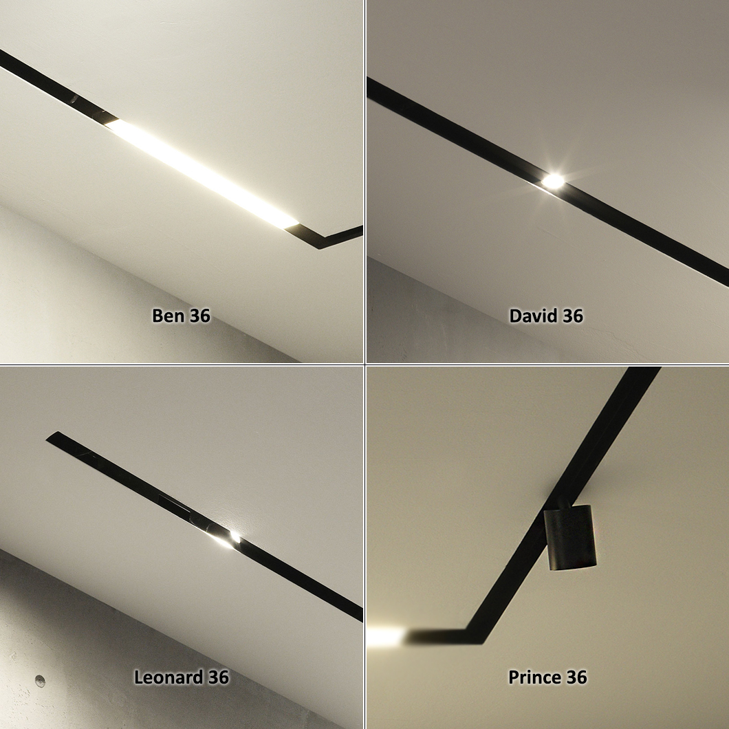 The Flexalighting Maggy 36 track system has a choice of 4 compatible LED light modules: