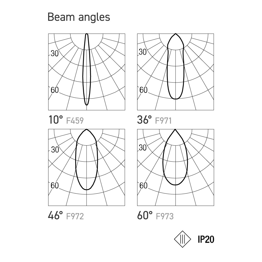 Quality optics and fine finishes come together in a highly reliable projector, available in white or black. The 24VDC constant voltage power supply (not supplied) allows luminaires to be wired in parallel, reducing installation costs and the number of power supplies. Available with 10°, 36°, 46° or 60° beam angle.