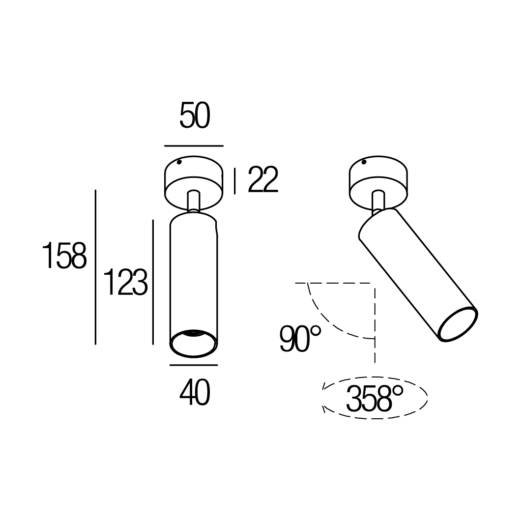 The largest member of the family, the minimalist MiniJos S10 surface mounted spot light combines a sleek design with high optical performance. The MiniJos S10 10W version has a ⌀40mm and a height of 123mm. With an adjustable tilt of 90° and rotation of 358°, MiniJos an be installed on the ceiling or wall and is perfect for both accent lighting or general illumination.